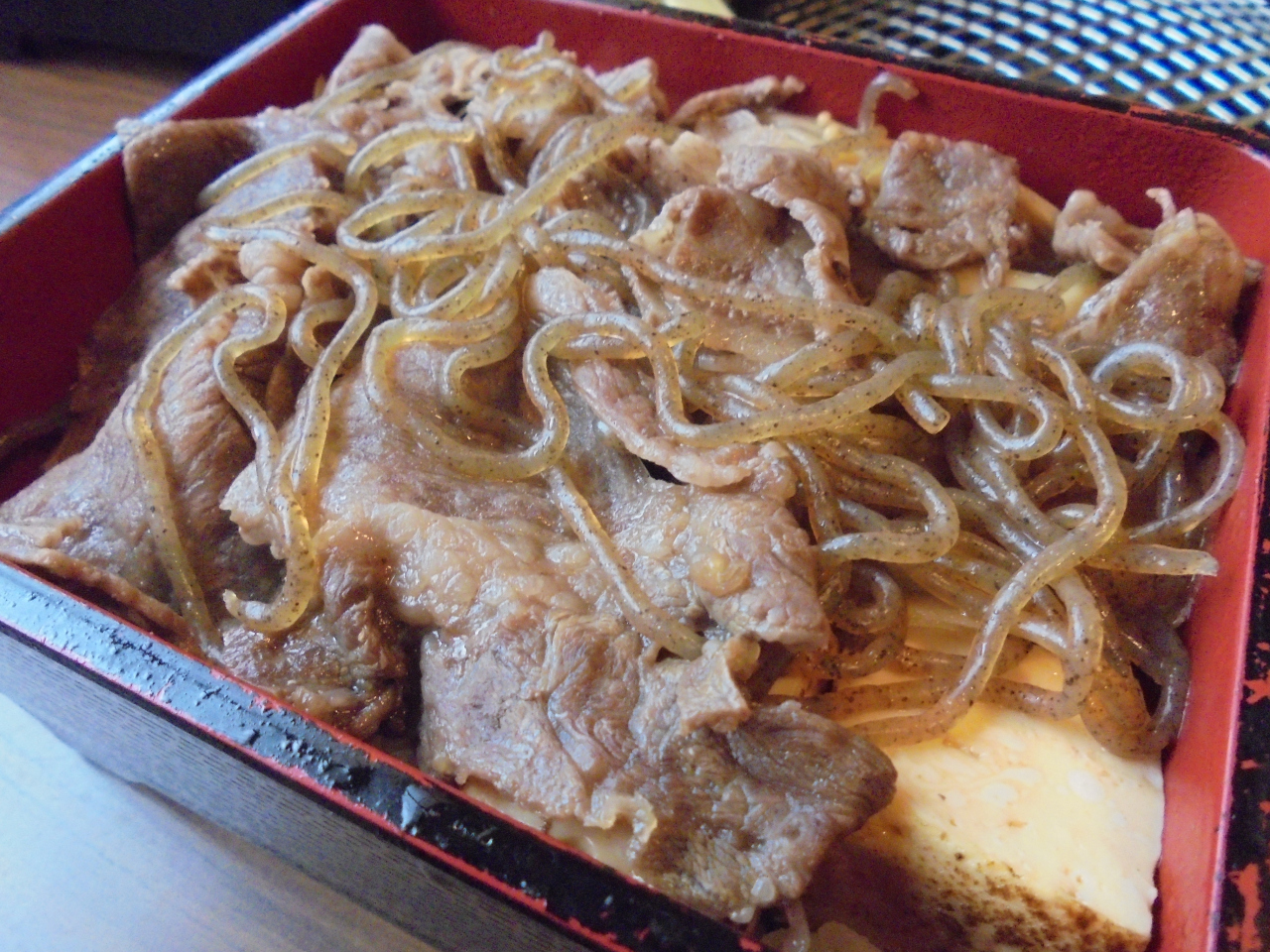オープン時間に入店したら、待合スペースはすでに20人ほどが。アジア系の観光客でいっぱい。SNSで人気店になっているようだ。20分ほど待って座敷へ。オーダーしたのは、飛騨牛すき焼き重とキムチの盛り合わせ。セットの野菜サラダには黄色のドレッシングが。今まで味わったことのない味でした。3種類あるキムチと一緒に食べたすき焼き重はとても美味しい。少し甘めに味付けされているが、飛騨牛の旨みを最大限に引き出した調理。朝食が遅かったにも関わらず、口いっぱいに広がる飛騨牛の味を噛み締めながら、お腹がいっぱいになるまで平らげてしまいました。