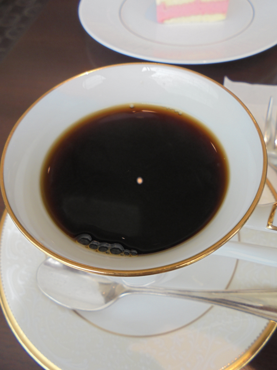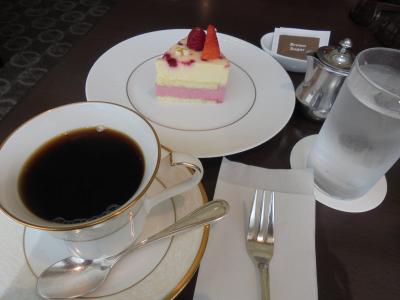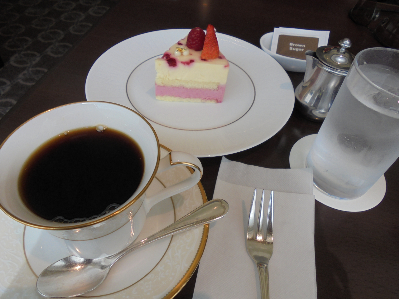 ホテルのロビーに隣接しているカフェです。チェックイン前の時間帯は静かで、お客さんは少ないです。ゆったりできる雰囲気で、休憩タイムに最適です。オーダーしたのは、ケーキセット。6種類あるケーキの中から一品選んだのは、チーズケーキとホットコーヒー。香りとコクのあるコーヒーとケーキはクラシックで高級感ある器で。イチゴとラズベリーがのったケーキは甘さ控えめ、上品な味わい。また利用したくなるオススメのカフェです。