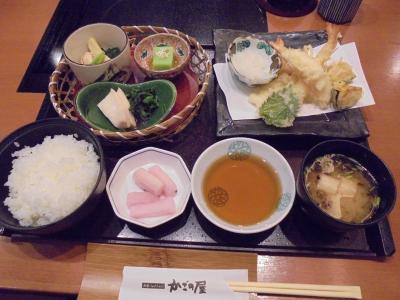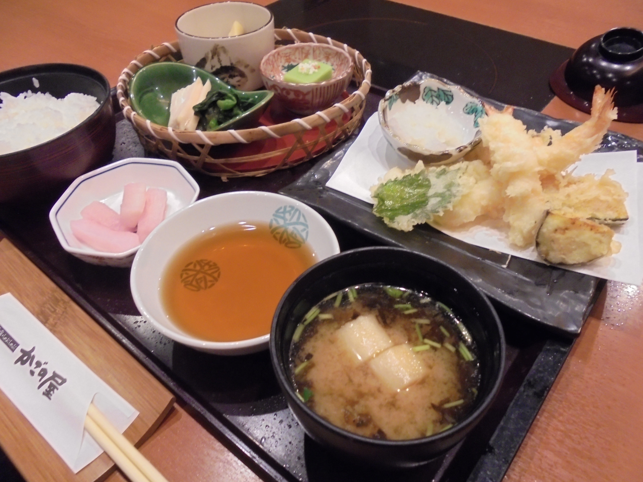 駐車場が広くて便利。平日のランチで利用。店内は落ち着いた雰囲気、テーブル席と個室の座敷席があります。QRコードを読み取るオーダースタイル。海老天ぷらと季節の籠盛りをオーダー。サクサクの天ぷらには海老天が2本も。3種の小鉢料理が入ったミニ籠盛りは目にも色鮮やか。味噌汁には麩も入って上品な感じ。どの料理もとても美味しくいただけました。