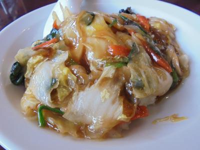 JR金山総合駅の南側にある中華料理専門店です。店内にはテーブル席、二階にも席があります。大好きなテレサテンの歌声がBGMで流れているのがいい。開店して30分ほどすると、お客さんがどんどん入ってきます。お客さんの回転はどちらかというと早いほうだ。オーダーしたのは、ランチメニューの豚骨ラーメンと中華丼。チャーシューとメンマがのったラーメンは中細麺。くどさはなく、あっさりとした味。豚骨スープが麺と絡んで美味しい。ご飯の量が多めの中華丼は白菜や人参など野菜がたっぷり。甘めに調理された中華丼が多い中、こちらのお店は甘さが抑えめ。豚骨ラーメンとの味バランスが理想的だ。