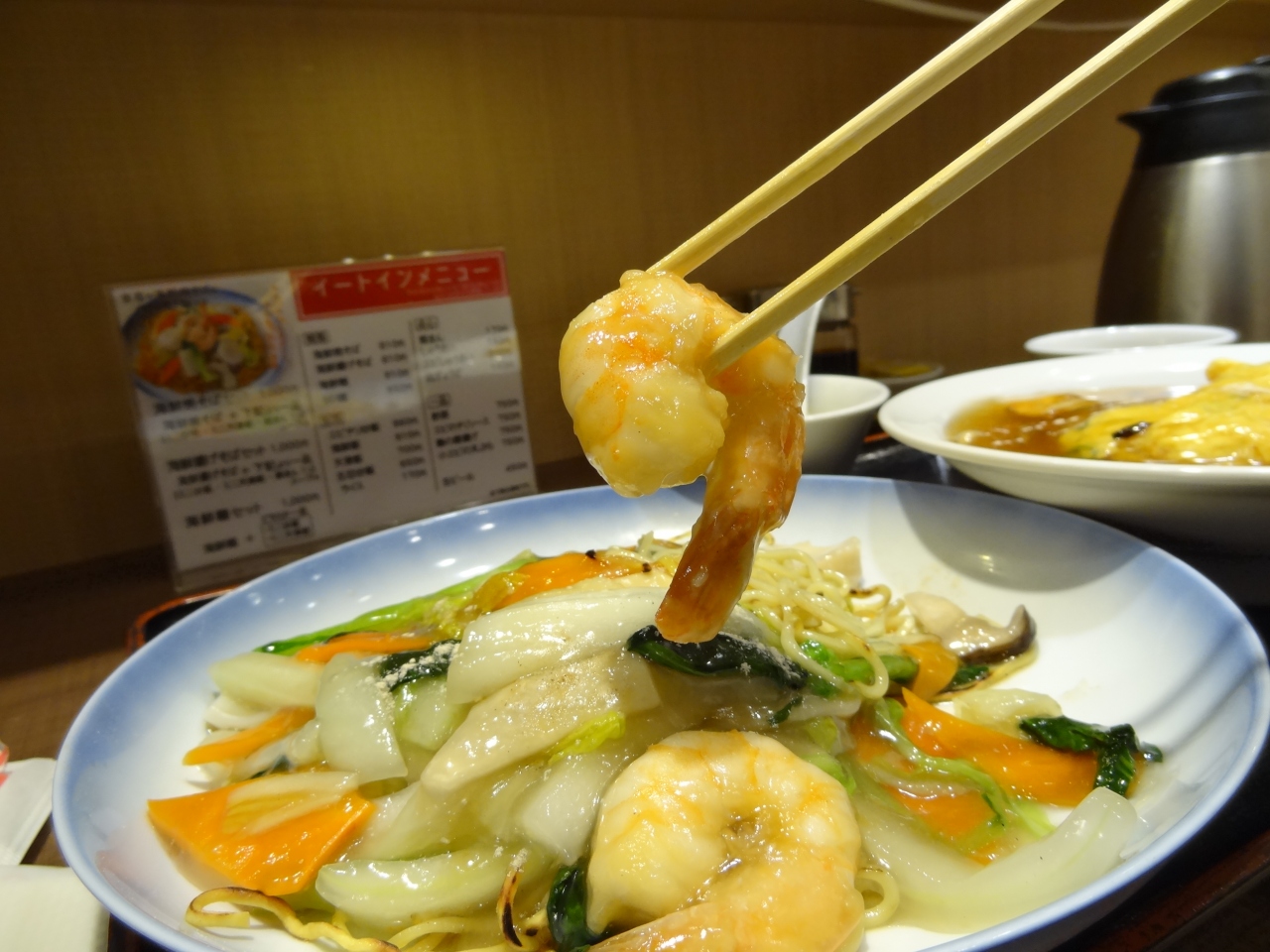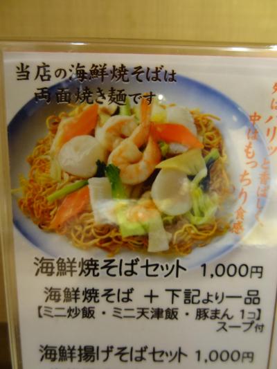神戸観光を終えて名古屋へ戻る途中、大阪でうまいものを食べようと思い途中下車。大丸梅田店の一階で、美味しそうな焼きそばの看板を見つけ、迷わず入店。店員さんの元気な声が飛び交い、明るく賑わっている店内に料理の味が期待できそう。オーダーしたのは「海鮮焼きそばセット」1000円、ミニ天津飯を付けました。焼きそばは両面焼きで、外はカリッと中はモッチリ。野菜もたっぷりでイカや海老(2尾)が目立っています。具材の持つ味を損なわないように調理されていて、焼きそばとの絡みも抜群!ミニ天津飯はアンがたっぷり乗っかっていて、ご飯と玉子焼きとの相性もすごくいい。とても美味しくいただけました。明るく元気な店員さんのいる店で、美味しくお腹いっぱいになる料理が1000円で食べられて満足できました。また大阪に来る機会があれば、このお店で食事しようと思いました。
