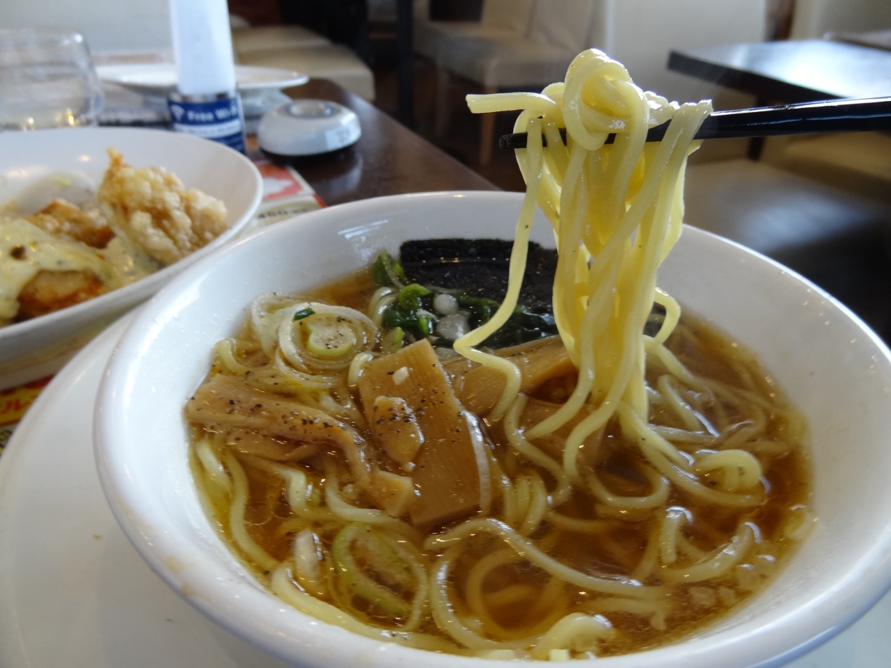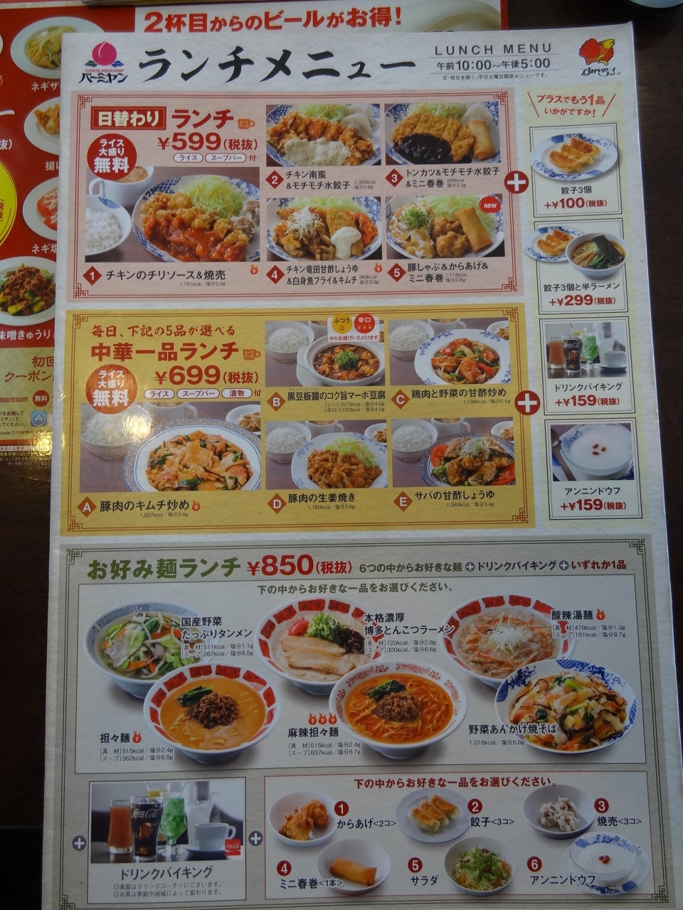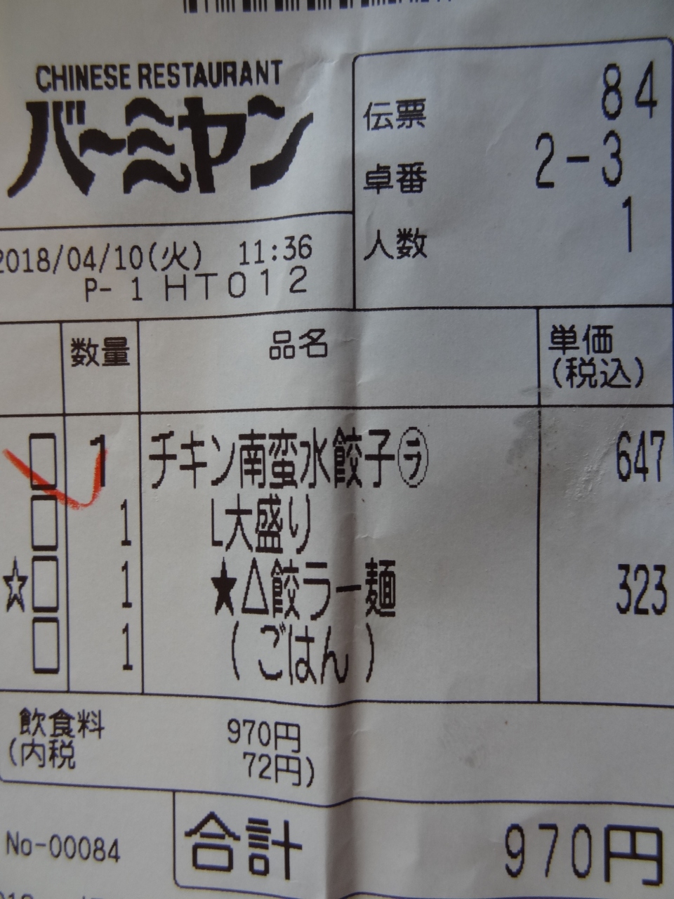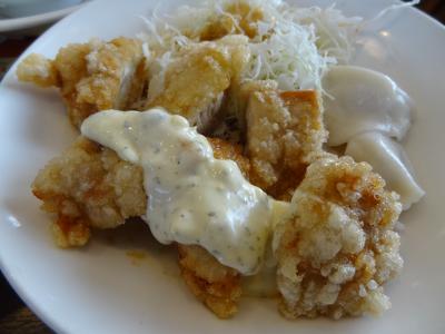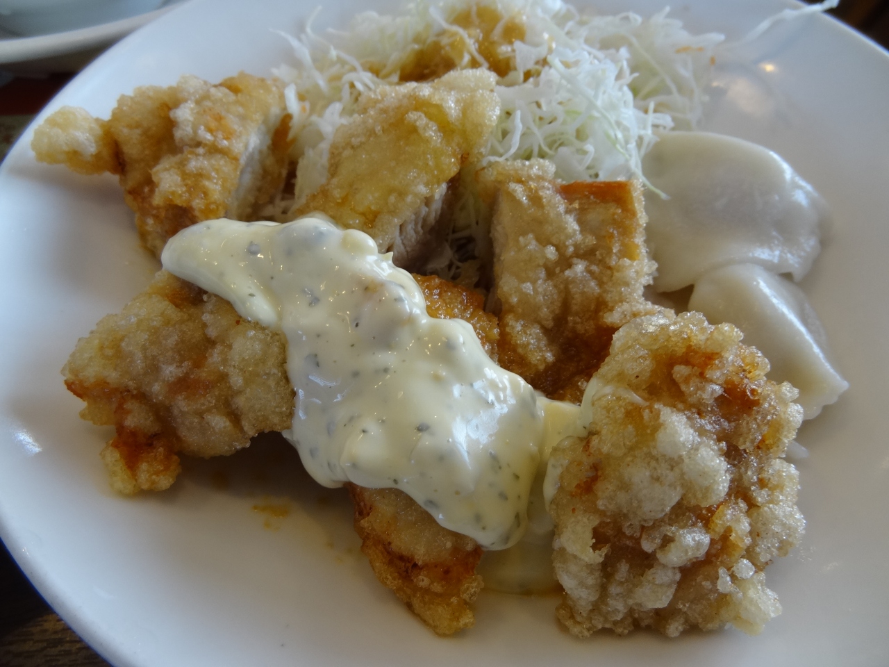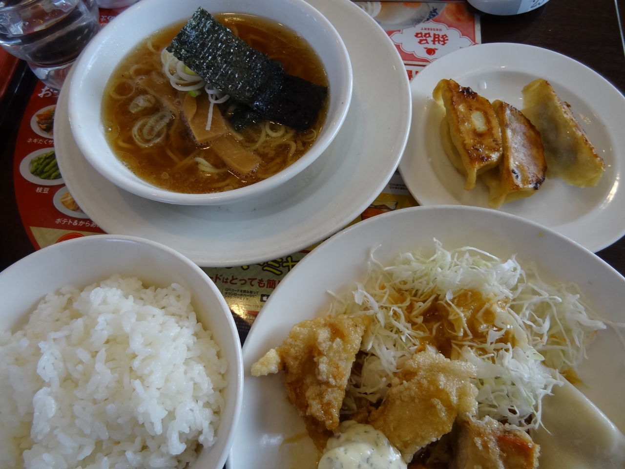 木曽三川公園でチューリップを見たあとで、ランチを食べにこのお店を初めて利用しました。総合ショッピングセンターの敷地内にあります。店内は窓ガラスが大きくとってあって明るい感じです。4人~6人がけのテーブル席がいくつもあり、分煙になっています。テーブルには無料のY新聞が読めるのがうれしいし、持ち帰っても構いません。オーダーしたのは、ランチメニュー「チキン南蛮&モチモチ水餃子+餃子3コと半ラーメン」。チキン南蛮は外がカリッとして中はジューシー。タルタルソースとあいまっていい味がしている。水餃子は名前の通り、モチモチしてこれもいい味。プラスした焼き餃子はニンニクの臭いはあまりしなくて、タレにかけたラー油と一緒に食べると口いっぱいに餃子の旨味が広がります。半ラーメンはしょうゆ味ベース、麺はやや太め、見た目よりあっさりした味に仕上がっています。これだけのボリュームで千円弱なのはコスパ高。中華料理ファンにはうれしいお店です。
