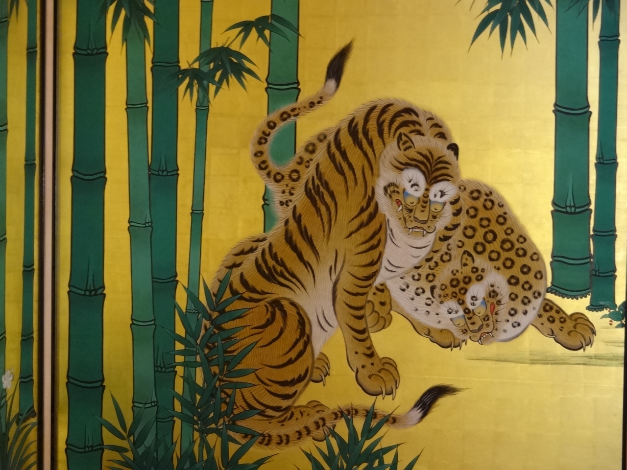 久しぶりに本丸御殿を訪れました。御殿の外観は平屋建てですが、京都の二条城の本丸御殿を思わせる造りに似ています。7・8年前に建築完成したのですが、中はいまだに再建当時の新しさが残っています。部屋が多くあり、襖の絵には虎や豹、鳥などの絵が生き生きと描かれていて、今にも飛び出して来そうな感じがします。素晴らしい!天守閣がこれから木造で再建され、本丸御殿と共に名古屋の観光名所がさらにパワーアップしていくものと信じています。楽しみにしています。