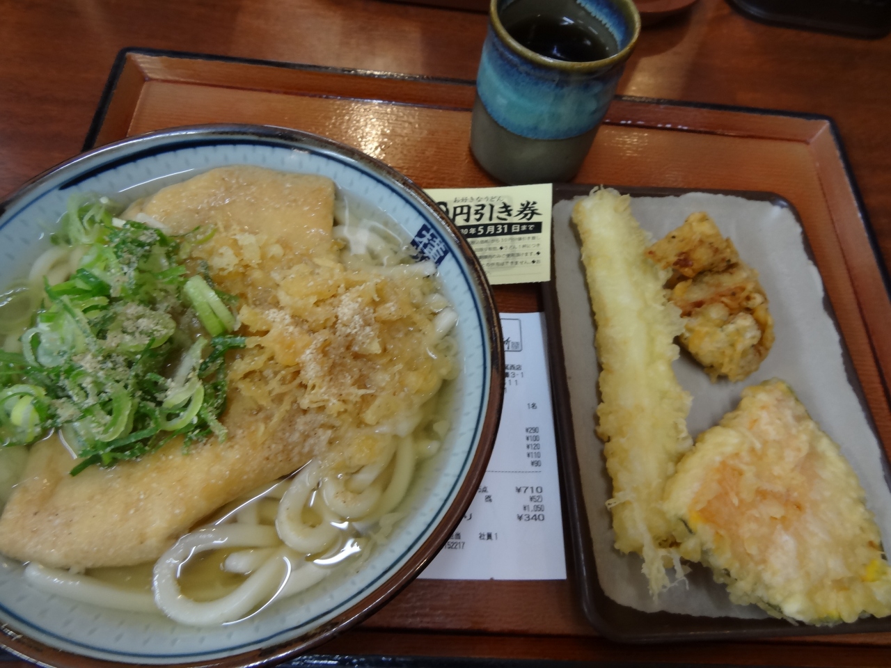 初めてこのお店を利用しました。お店の屋根に乗っかっている大きな看板や旗が目立っています。うどんに好きな天ぷらなどを選んでレジに進みます。レジで清算後、唐辛子や天カス、刻みネギを好きなだけうどんにかけることもできます。看板にもあったように、讃岐の手打ちうどんということもあって、うどんにはコシがあり天ぷらと出汁がよく絡み、美味しく食べることができました。