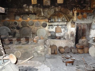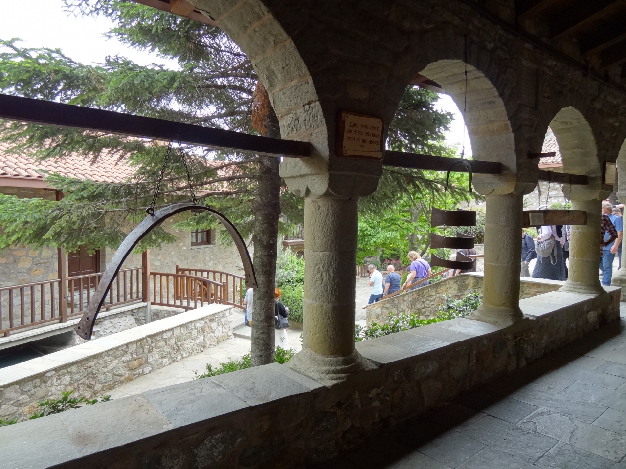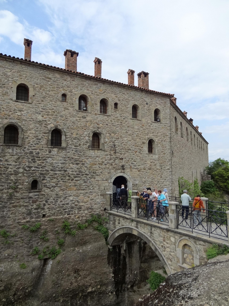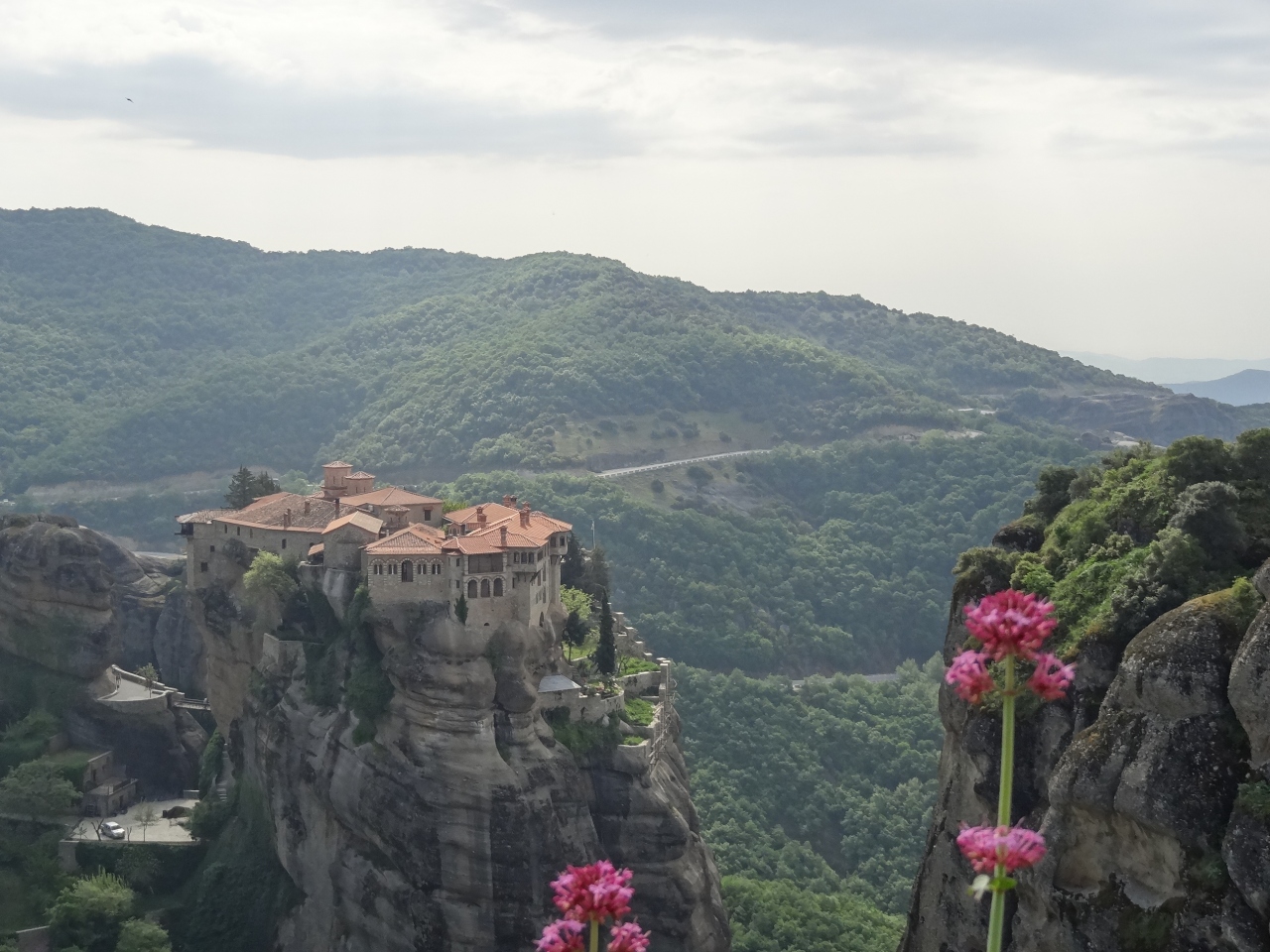 メテオラの奇岩の上に建つ、6つの修道院の中では一番大きな修道院です。駐車場から下へ降りていき、真上にそびえる修道院を下から眺めると、想像を絶する高さに驚きます。三百段くらいはありそうな階段を上がって建物にやっとの思いで入ります。