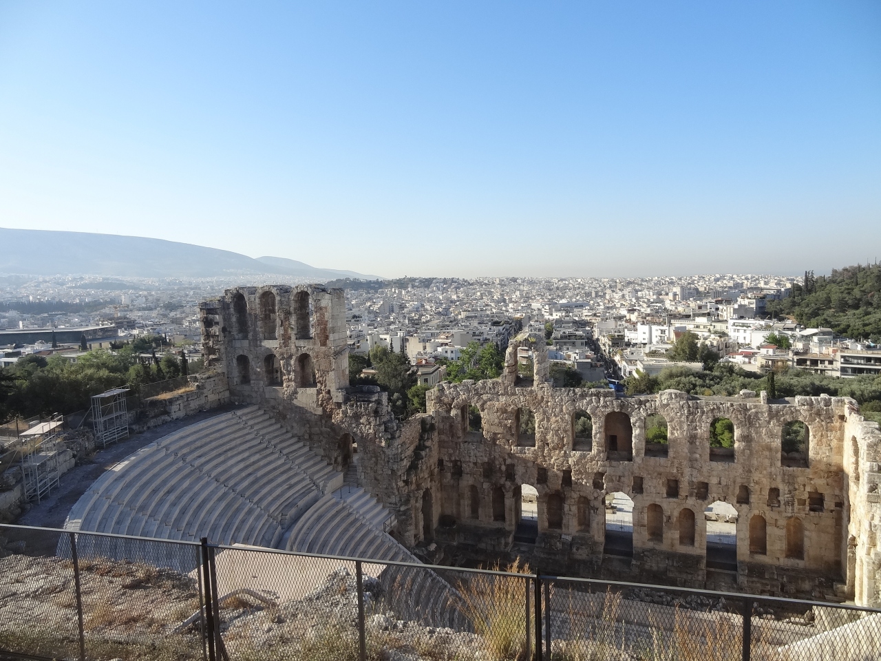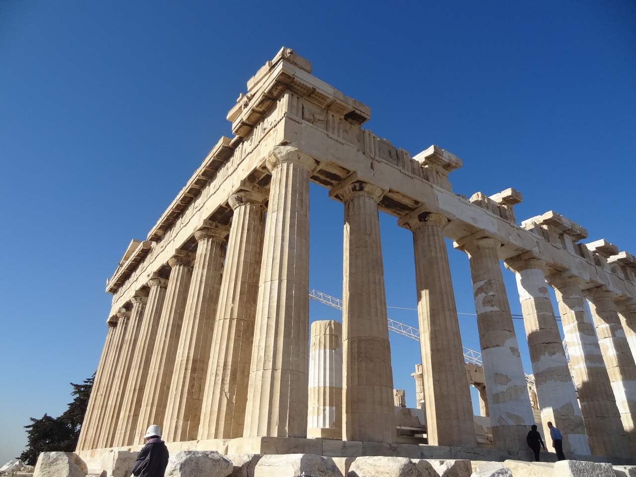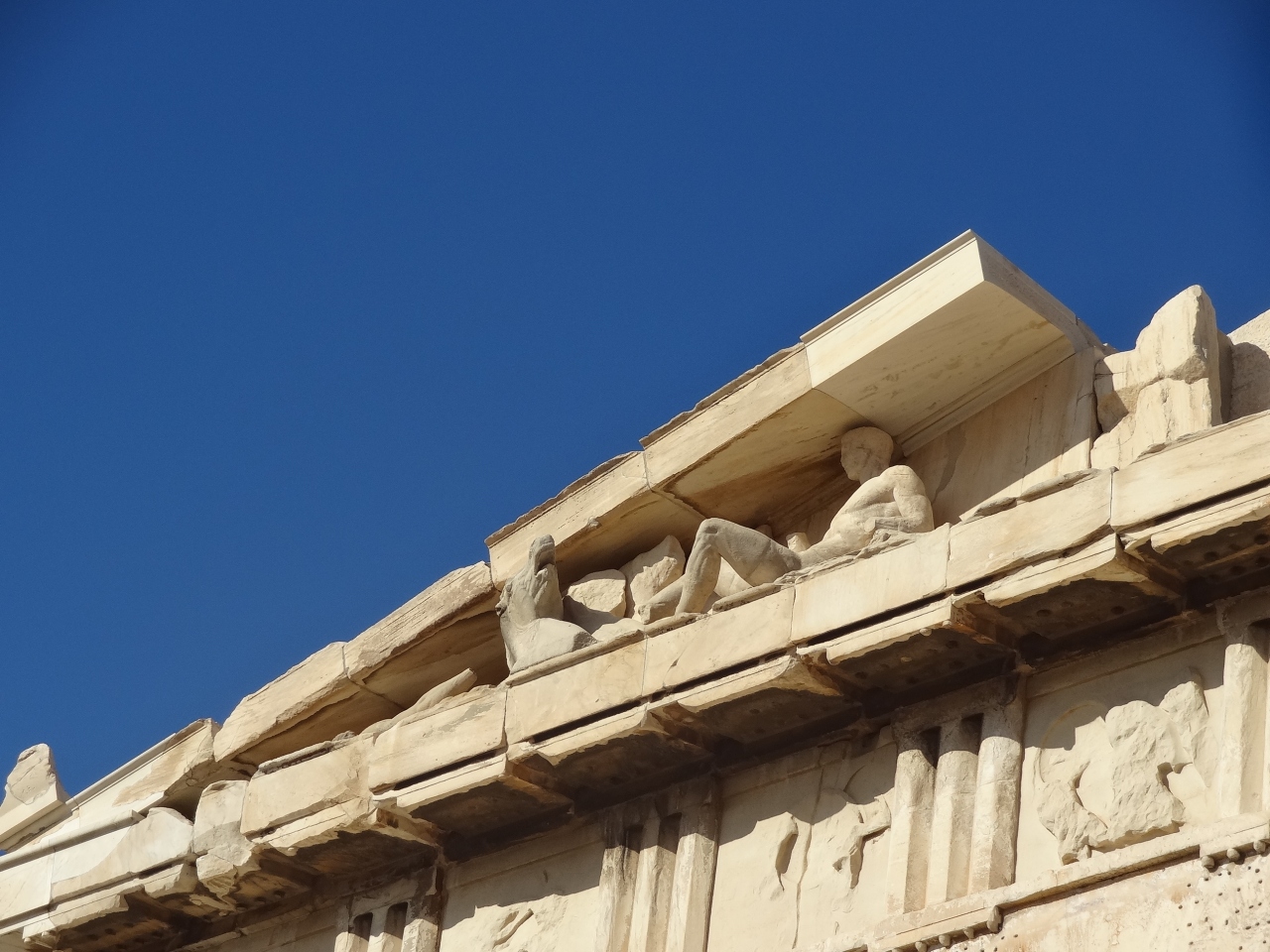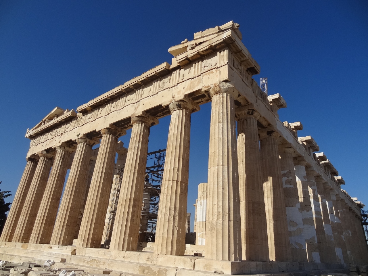 入場ゲートに着いたのが午前9時過ぎ。それほど観光客はいなくてスムーズに入場できました。石畳の緩い上り坂を上がって行くと、あちこちに神殿や円形劇場を見ることができます。階段上にある高い門をくぐると、かの有名なパルテノン神殿と左側に6体の少女像を持つエレクティオン神殿が目の前に迫ってきます。ギリシアの神々に近づいて来たような錯覚さえ覚えました。