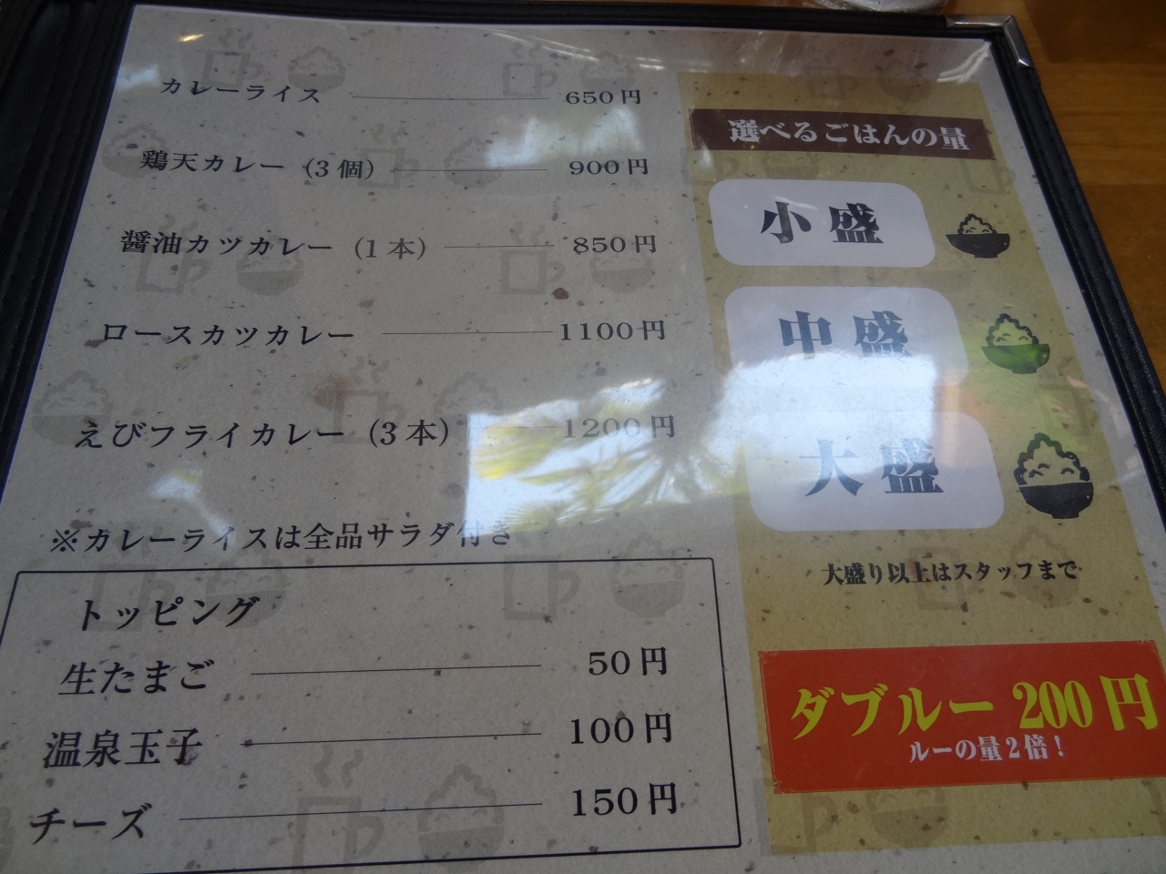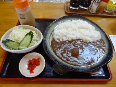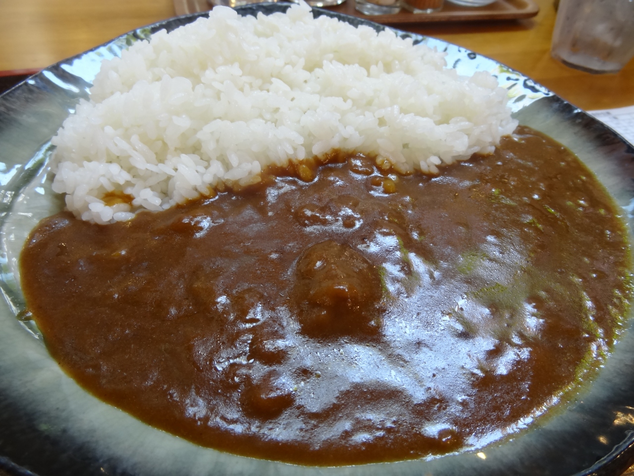 東谷山フルーツパークの帰りに立ち寄った、どことなく外観が地中海風のレストランのようなお店です。醤油カツ丼を20分で食べたら無料というポスターが入り口の左側に掲示されています。へー!、大食いの店なんだ!店内に入ると、カウンター席とテーブル席が程よく配置されていて、中央にはガラス張りの空間がありシュロが一本立っています。オーダーしたのはカレーライス。ライスは大盛り。ドレッシングはサラダにかけ放題なのがうれしい。ルーはよく煮込まれていて、いい香りがします。ライスとの相性も抜群。これだけの味とボリュームで650円は安い。またこのお店に来て、違うメニューも食べてみたいと思いました。