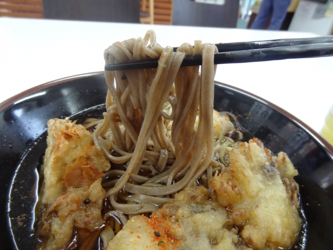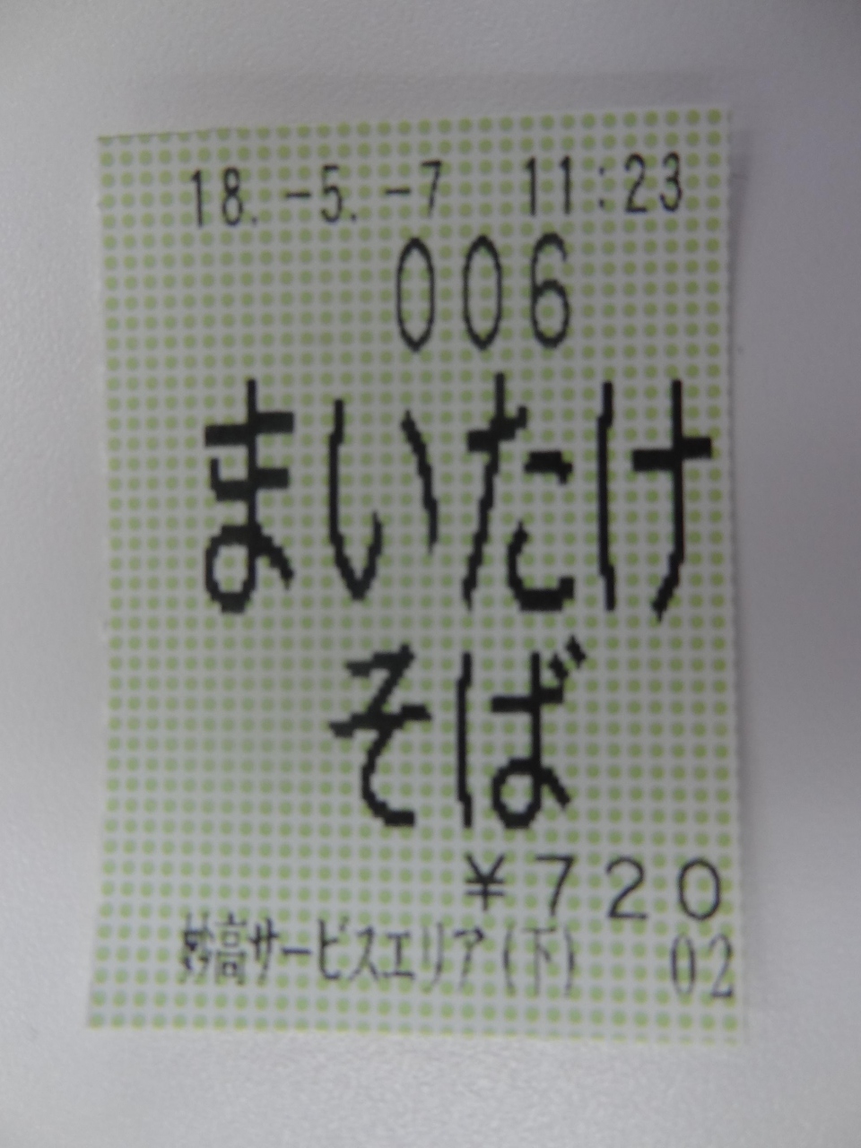 妙高SA(下り)のスナックコーナー左のスペースにある店です。発券機でメニューボタンを押してまいたけそば(720円)をオーダー。空いていたので、すぐ食べることができました。舞茸が天ぷらになっていて、衣の中は舞茸がびっしりと入っています。そばは普通の太さのそば、コシもまあまああって喉越しがよい。だし汁と舞茸の天ぷらの相性がとてもよく、だし汁が天ぷらの衣に程よく染み込みちょうどいい柔らかさ。舞茸を天ぷらにするのもいいなあと実感。次回もこのまいたけそばを食べてみたいと思いました。