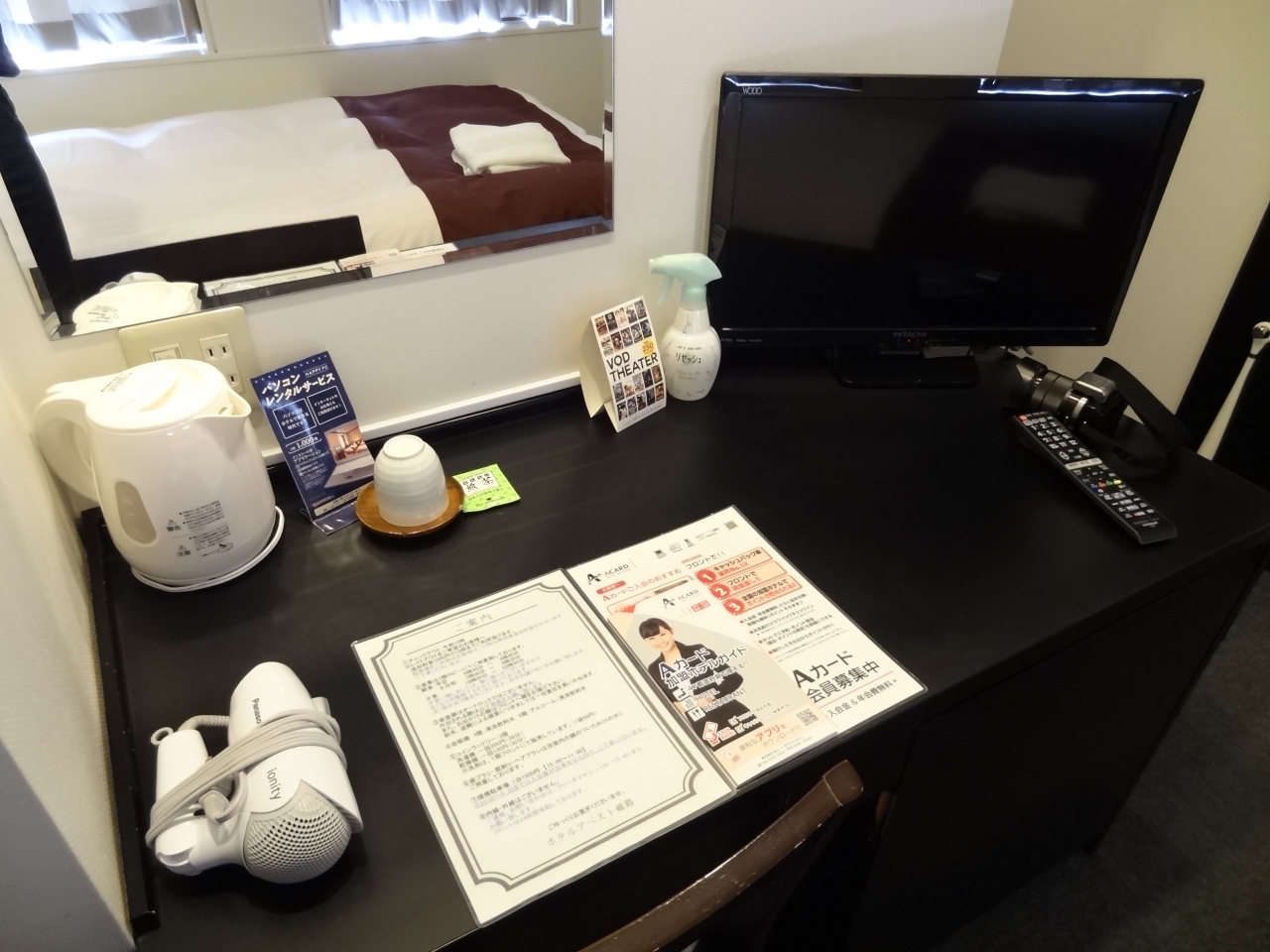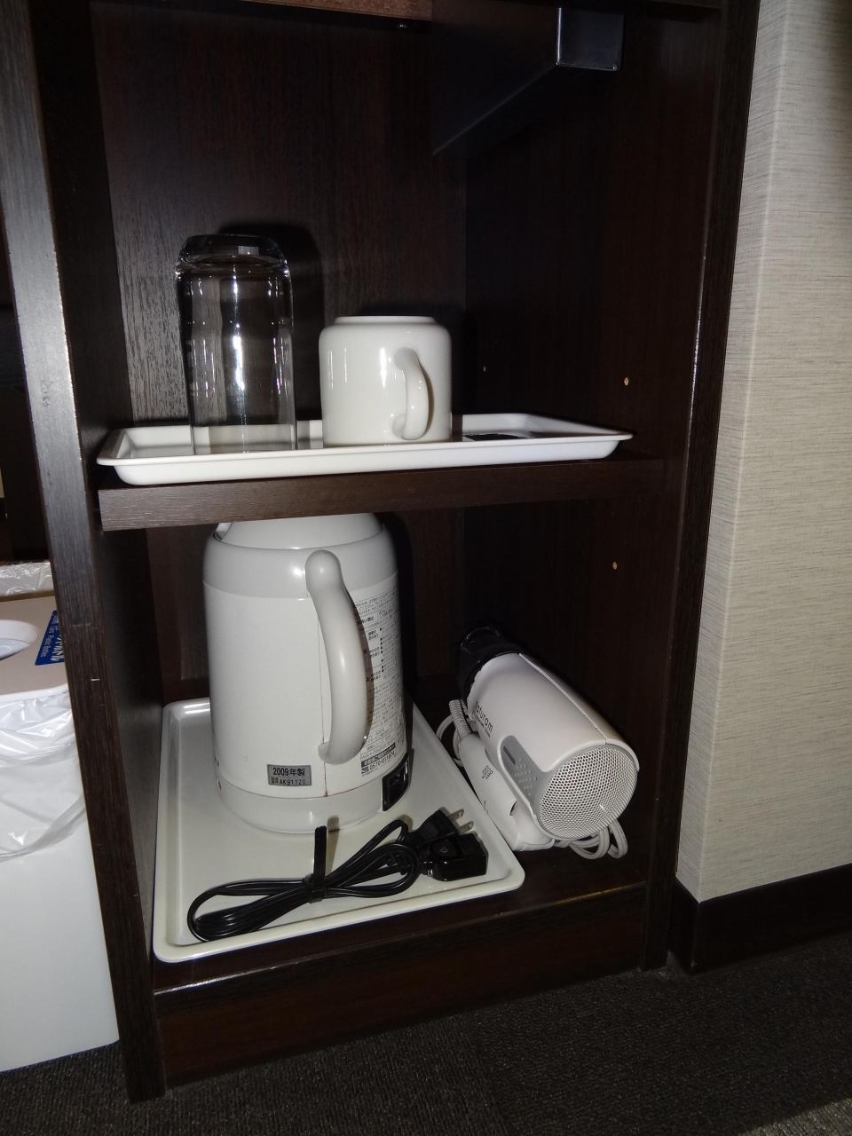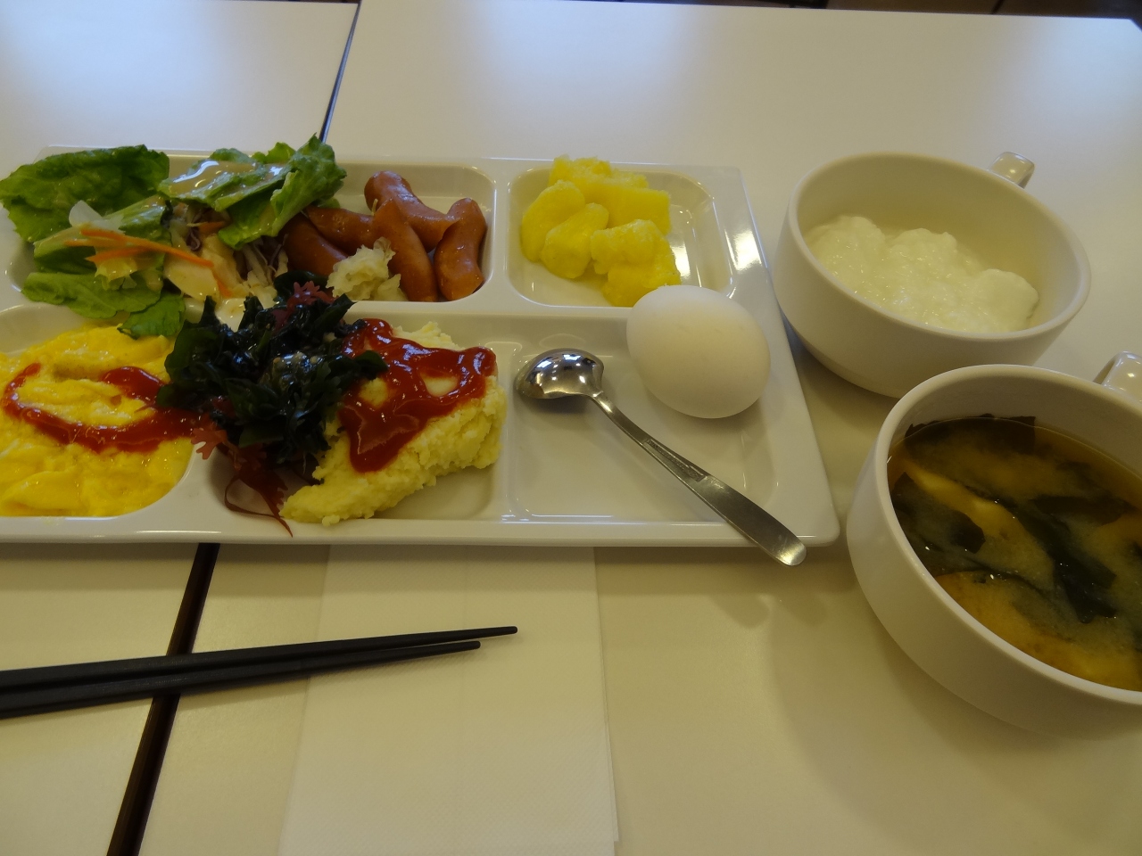 JR姫路駅の西北西、徒歩5分ほどのところにあるホテルです。いわゆるビジネスホテルで、泊まった部屋はセミダブルベッドが置いてあり、一人ならちょうどいい広さでした。テレビ台と兼ねたライティングデスクは使い勝手のいい広さ。バスルームはユニット式で、アメニティグッズが鏡の中に置いてあるのが珍しい。部屋にグラスと加湿空気清浄機があれば言うことないです。夕食はごく普通のカレーライスとうどん。朝食はブッフェ式、値段からみればメニューの多さは望めないが、まずまずの品揃えといったところ。二食付きでコスパは高いと実感できました。