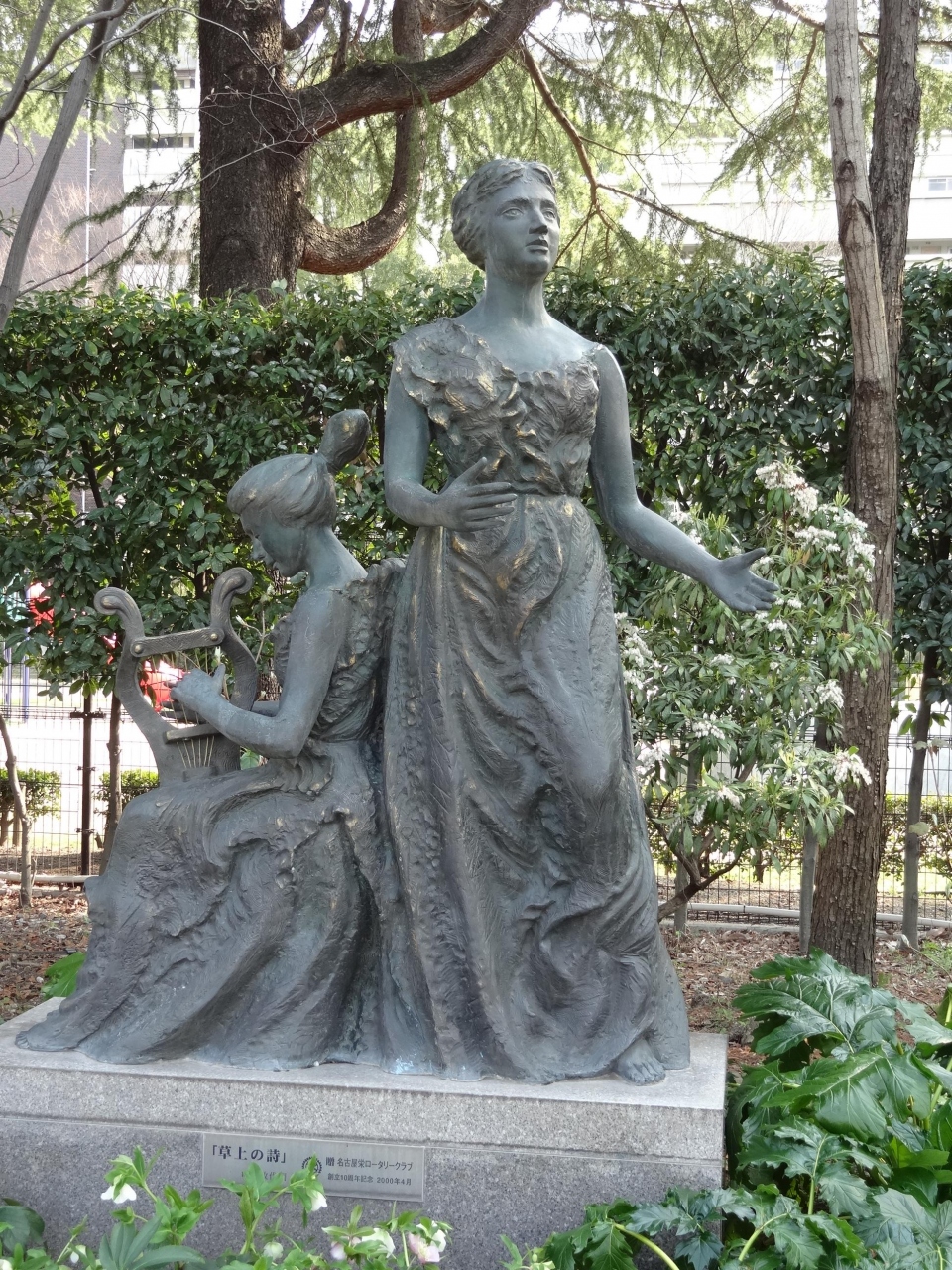 山陽電鉄のJR須磨浦公園駅で下車すると、駅の北側にはロープウエイで鉢伏山の展望台まで行けます。今回は時間がなくてロープウエイは利用しなかったです。海岸に沿って東に延びる公園をずっと歩いてみました。桜はすでに満開を過ぎていて、散りかけている桜の木もありました。公園内はそんなに人がいなくて散歩やワンちゃんを連れた人を見かけるくらいでした。ボートをかたどった遊具などがある広場では、小さなお子さんを連れた家族連れにはうってつけでしょう。東の方向にどんどん歩いて行くと、ボーイスカウトのウルフカブ発祥の地を記念して立てられた少年像が海のほうに向かって立っています。さらに奥にはみどりの塔があり、羽衣の天使のような美しい彫像が海からの風を受けて舞っていました。