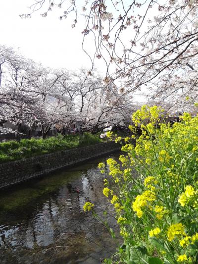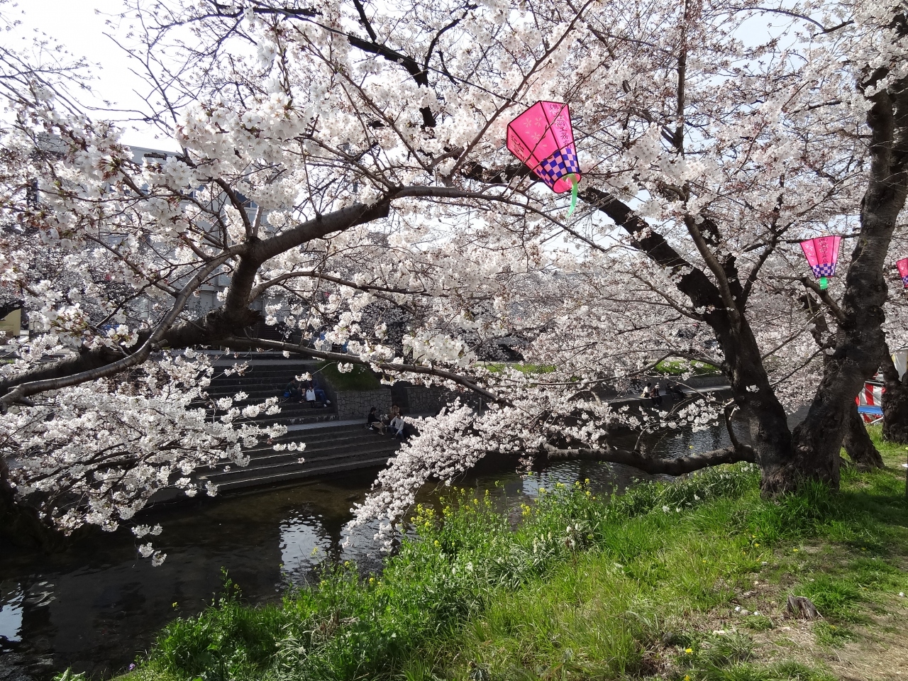岩倉駅のすぐ東側、南北に伸びる五条川に沿って桜並木が続いています。その距離は半端じゃないです。少なくとも5キロはあるでしょうか。歩道も整備されていて、東西に走る道路の下には川に沿って専用の通路も設けられています。訪れた当日は桜が五部咲き、黄色い菜の花とベストマッチング。川面に続く露店はまだ準備中、これから露店を設営する足場スペースが目立ちました。平年より開花がとても早くて桜祭りを前倒しにすることができなかったようです。それでも、川べりには柵がないので、川の淵まで近寄りローアングルで桜を撮影できるのがいいです。猫などの糞の臭いが気になりました(笑)。