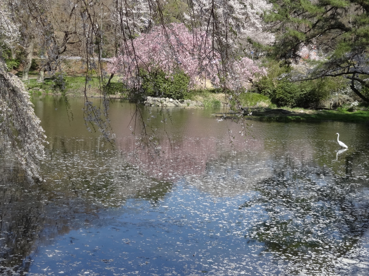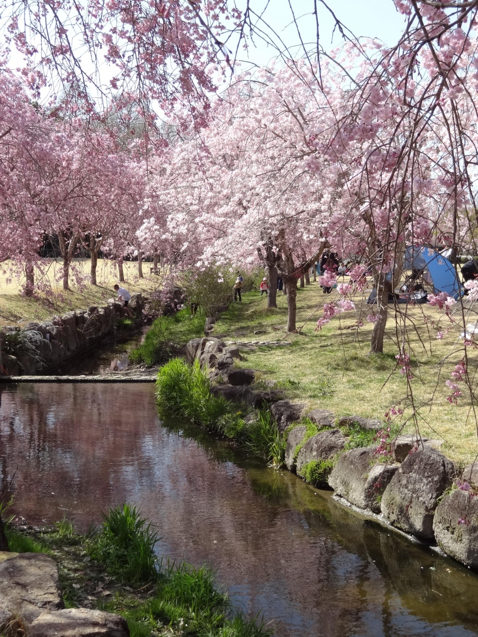尾張旭市と名古屋市にまたがる公園です。敷地面積はとても広くて、すべてを巡るには2・3日でも足りないでしょう。尾張旭市からこの公園に行くと、100台は軽く停められる無料駐車場があります。公園内はよく整備されていて、奥にある池の近くではバーベキュー(有料)ができる施設もあり、トイレの数も十分で利用しやすいです。訪れた当日は、公園内の広い芝生の上ではシートを広げてカップルや親子連れが満開の桜の下で花見をしている最中でした。ソメイヨシノの他にしだれ桜もあり、公園内はピンク色で染まっていました。