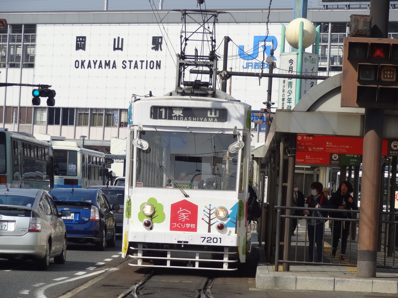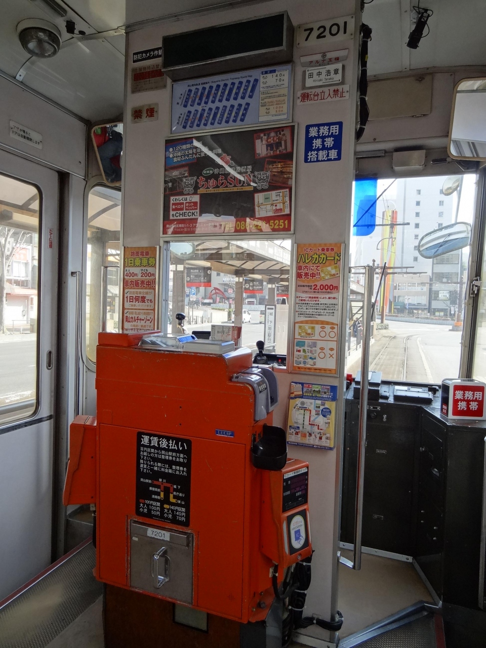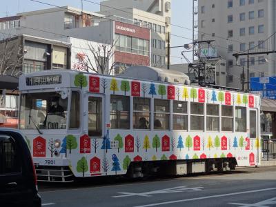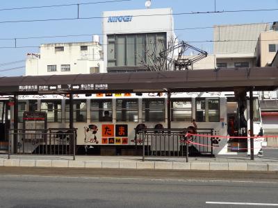 岡山駅の観光案内センターで、後楽園・岡山城の観光後は市電で岡山駅までと勧められました。勧められるままに、石川公園近くにある市電乗り場から路面電車に初めて乗車しました。車両の塗装は白を基調に赤とブルーの絵が描かれていました。愛知県で現在、市電が走っているのは豊橋市くらい思いつくだけになってしまいました。約45年前まで名古屋市でも市電は走っていました。岡山市で市電に乗ってみると、名古屋や豊橋で乗っていた市電を思い出させてくれます。とても懐かしかったです。