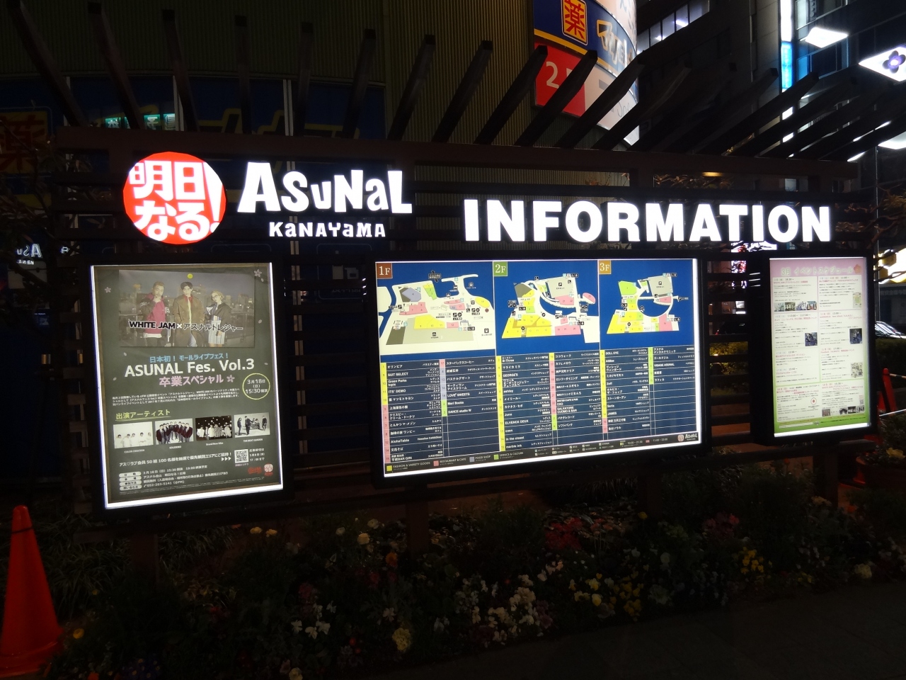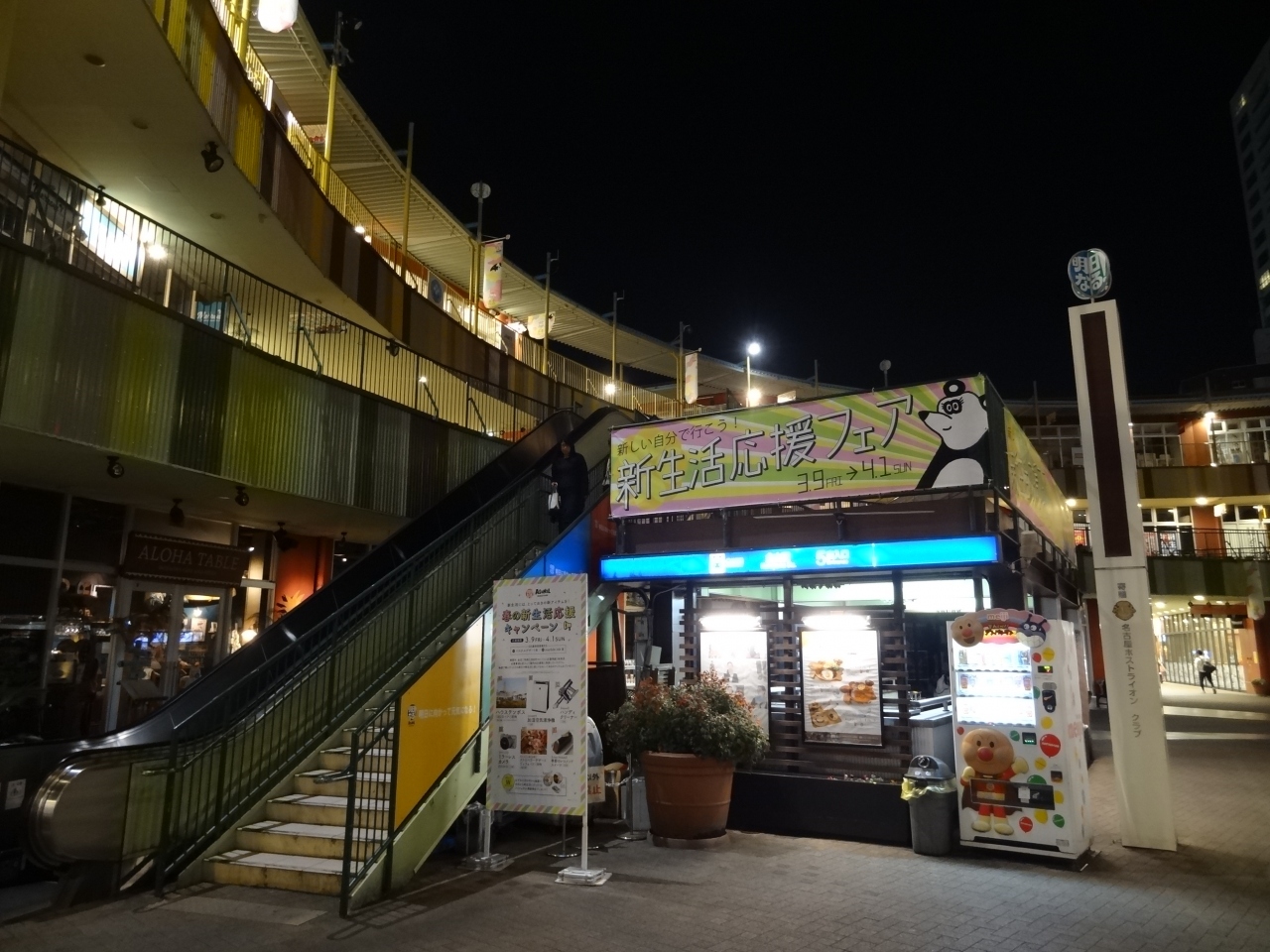 明るい時間帯の口コミはありきたりなので、夜の10時過ぎにJR金山総合駅を利用しました。たくさんある店の照明でアスナルエリアは幻想的な表情を見せてくれます。三階建ての建物になっているから、かなり立体的に思ったよりも明るく撮影できました。夜も遅い時間帯になると3階になるほど閉店している店が多くなります。3階から一階にある広場を見下ろすと、まだ5・6名の人がベンチに腰かけていました。派手なイルミネーションはないですが、柔らかい照明で照らされたこのスポットは名古屋の夜景のベストスポットの一つと言えるでしょう。