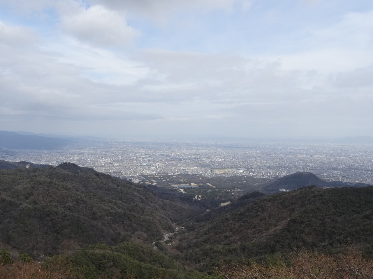 有馬温泉から芦有ドライブウェイ(有料)に入り、20分ほどでこの展望台に着けます。道路沿いにある展望台で、30台ほど無料で駐車できます。有料の双眼鏡も常備されていて、飲食ができるお店もあります。この日は午後でも風が強くて少し寒かったですが、それでも7・8名の観光客がいて、景色を堪能していました。180度まで広がる展望台では、大阪と大阪湾を一望できます。特に、大阪空港から飛び立つ旅客機が見えるのがいいです。もちろん、右手奥には関西空港も霞んではいましたが、双眼鏡で見ると空港までの橋や空港全体を見られます。昼間でも素晴らしい景色が見えますが、夜になればきっと夜景はもっとファンタスチックになるでしょう。
