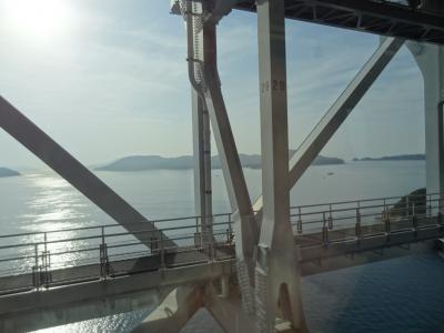 青春18きっぷを利用して本州と四国間に架かる瀬戸大橋を初めて往復しました。全部で6つの橋を総称して瀬戸大橋と呼ぶことをそれまで知りませんでした。橋の種類は吊り橋・斜張橋・トラス橋になっていて、バラエティのある橋脚が見えるだけでも飽きません。JRを利用してこの橋を通過しても特別料金もなく、素晴らしい瀬戸内海の景色も見られて、すごくお得に感じます。四国に入る時は東側の座席に座り、帰りは西側の座席に座れたので、両側の景色を見られて大満足。また、車でも通れるというのも魅力に感じます。今度、この橋を利用するときはぜひ車で渡ってみようと思います。