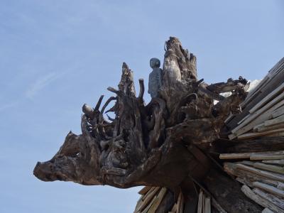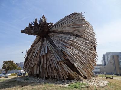 JR高松駅のすぐ北側にあります。瀬戸内海を見たくて海の方へ目をやると、何やら巨大な「椰子の実」のような物が転がっています。近づくにつれ、その椰子の実は木の長い板状のものを繋いでできているようです。この日は閉館ということで中には入れなかったです。巨大なオブジェの周りを一周してみました。オブジェの一番上に子供のような人が海を見て立っていました。案内板を見ると、台湾から贈られたもので、作品名が「国境を越えて・海」と書かれていました。台湾と日本とのつながりを象徴するオブジェを見て、台湾へ旅行したことを思い出しました。