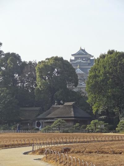 岡山にある後楽園を初めて訪れました。庭園は今までに訪れたことがないほどスケールが大きいのには驚きました。茅葺の民家や苔むした地面に椿の花が横たわっていたり、池や水路では色とりどりの鯉が泳いでいて、素晴らしい景観を見せていました。特に、大きな池の傍らから見える景色に魅了されました。池のほとりの左側に小舟が舟屋根の下に置かれ、趣のある橋と遠景に岡山城という組み合わせは日本の情風景の代表ともいえる景色です。さすが、日本三大名園の一つとなったことに納得できました。岡山観光では絶対はずすことができない観光スポットです。