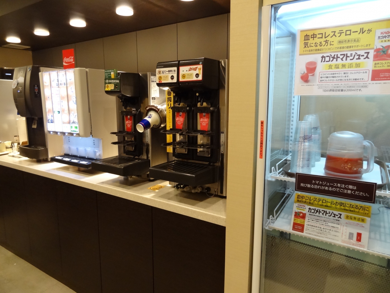 いつもは第1プレミアムラウンジを利用していますが、今回は第2プレミアムラウンジを利用してみました。設備は改装済みの第1に比べると華やかさはあまりないです。でも、お客が少ないのでゆったり過ごせます。扱っているドリンクやおつまみは第1とほぼ同じ。ビールは第1よりも1種類多くて、3種類もあります。トマトジュースは第1ではセルフサーバーになっていますが、第2ではストックケース内のピッチャーに入っているのが違う点です。また、第2のほうがラウンジ外のトイレに近いというのも利点になっています。