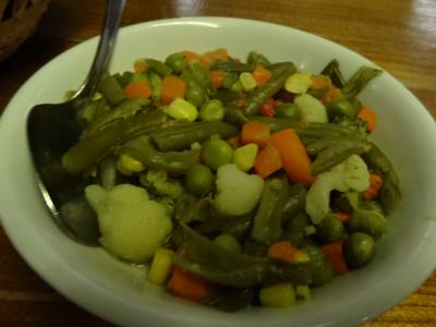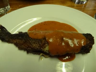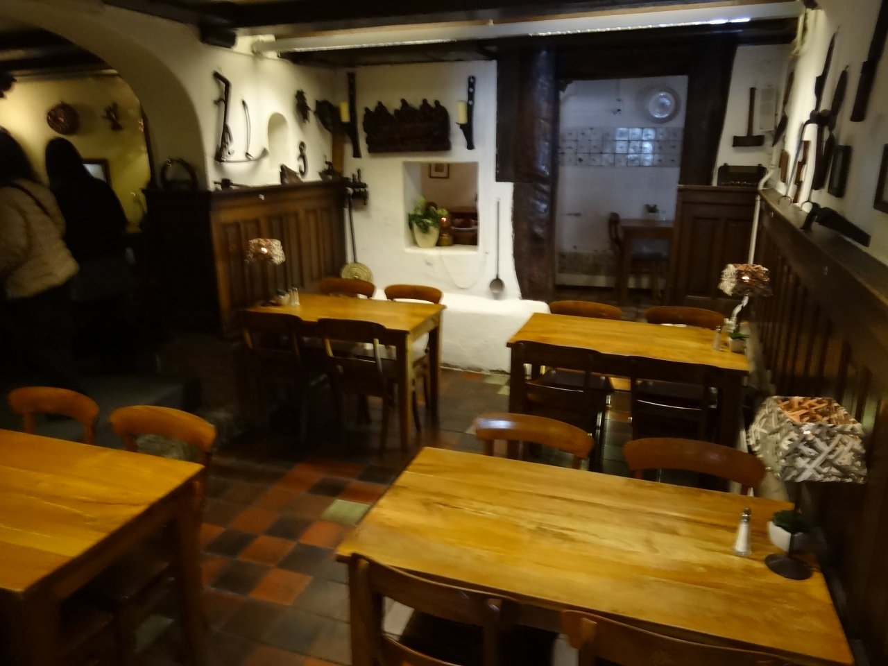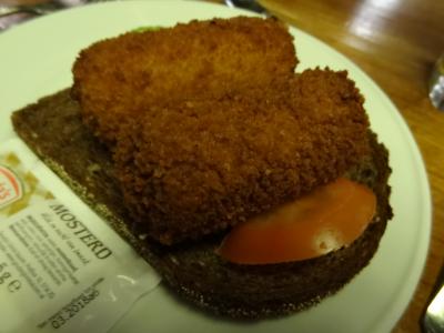 オランダ農家で昔使われていた生活用具が通路や壁際に置かれていて、雰囲気がとてもいいです。まずは、オランダのビールを注文。喉を潤して料理を待ちます。この店の名物「クロケット(コロッケ)」は少し揚げすぎのような感じで、日本のクリームコロッケのような形をしていました。味はまずまず。後の料理は野菜の煮付けとか揚げたジャガイモなどが出てきました。メインはニシン料理。上手に調理されていて私好みの味でした。デザートのホイップクリームは甘すぎでなく、美味しくいただけました。