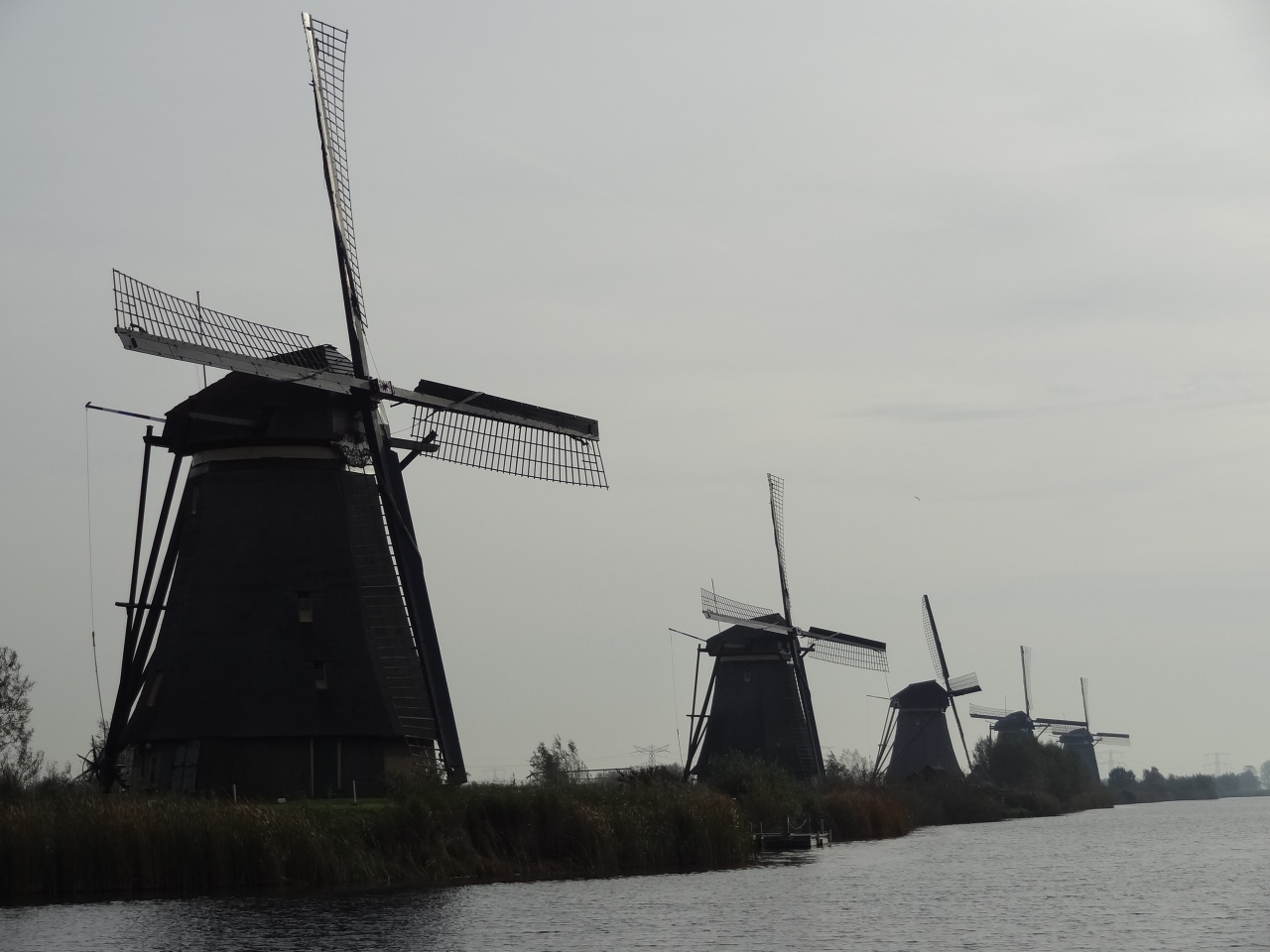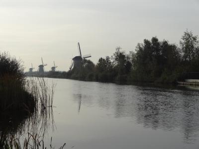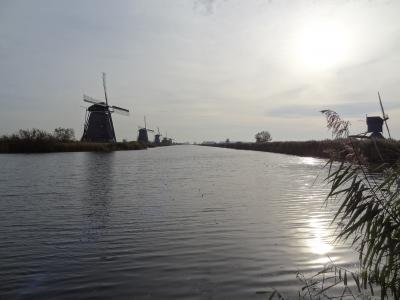 発電用の現在の風車とは雲泥の差です。何と言っても昔に作られた風車は風情があります。二桁に上る風車がこの地域に集中しているのがすごい。一番近い風車は駐車場からも見えます。近くの風車まで散策路が整備されていて、自転車の専用通路も併設されています。一部歩道と自転車専用通路が兼用されている箇所があるので注意が必要です。散策路ではワッフルなどを売る露天もあります。駐車場から歩いて5分くらいの風車は有料で中に入ることもできます。散策路はずっと奥まで伸びていて、さらに素晴らしい景観が見られます。朝方は駐車近くでは逆光になり、左手奥に数基ある風車は撮影しずらいです。でも、奥の十数基ある風車群は光線の当たり具合がよくて、撮影は比較的楽です。一列に置くまで伸びる風車群が見せる景色は絶景そのものです。さすが、世界遺産に選ばれたのも納得できます。