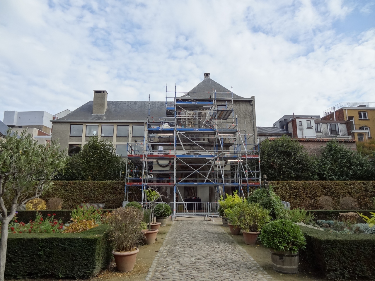 画家ルーベンスのファンであれば、興味をもってじっくり見学できるでしょう。かなりの豪邸で、中庭はよく手入れされていてきれいな花が咲いていました。至る所に古代ギリシアの神々の彫像が立っています。一部の建物は足場が組まれていて工事中になっていました。中庭を見学したあとは、建物の中を見て回ります。豪華な家具や彫像・絵画など、所狭しと展示されています。気をつけなければならないことがあります。展示されている絵画などの前の床にピアノ線が一本張ってあり、この線より腕など身を乗り出すと警報音が鳴ります。くれぐれもご注意を。