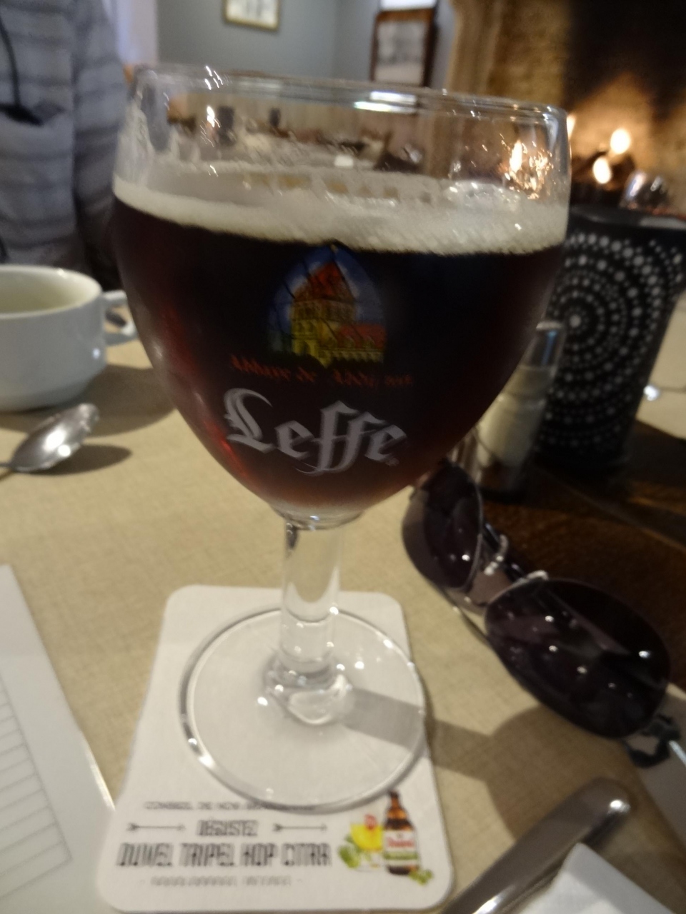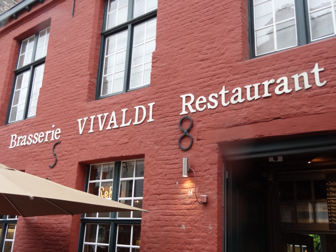 ブルージュの歴史地区とマルクト広場の観光を終えて、昼食のためにこのレストランに立ち寄りました。お店の入り口の看板に私のお気に入りのヴィヴァルディの名が入っていました。店内はクラシックの雰囲気が漂う調度品が置かれていて、ラグジャリーな気分で食事できます。暖かそうな暖炉の上には白いバイオリンが二丁飾ってあり、クラシックのBGMが流れて雰囲気は最高でした。飲み物のメニューは英語と日本語が併記されていてオーダーしやすいです。まずはベルギービールを注文。ワイングラスのようなグラスで出てきました。コクのある味で喉元スッキリ。次の料理は、とろみのある豆スープに、生野菜とフライドポテトにミートボール。素材の持ち味を上手に生かした調理でおいしかったです。デザートはチョコレートムース。チョコレートの香りがいっぱいで、口の中はスッキリしました。このレストランの周囲にはかわいいお土産ショップもいくつかあり、家内と共にショッピングを楽しみました。