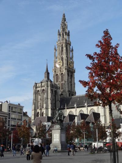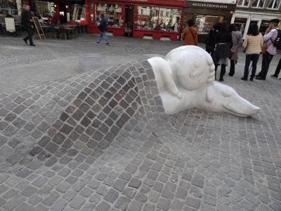 ノートルダム大聖堂を訪れた後、市内中を歩いてこの広場にやってきました。中世の面影をいっぱい残した建物が立ち並んでいて、何となく心が華やぎます。平日なのに人が結構いて市民の憩いの場にもなっていました。建物の上部をじっくり見ると、それほど華やかさはないですが、三角形の屋根のてっぺんに黄金の像が立っていて、日本では見かけない装飾に興味が沸きます。広場に立つ「ブラボーの像」もこの広場によくマッチしていました。
