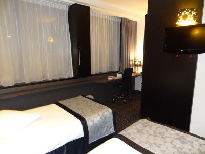 住宅地にあるホテルでメインロードは裏側にあります。玄関から出て左手600m先にスーパーがあり、金曜日は夜9時まで営業、午後8時を過ぎると閉店です。ロビーはそれほど広くなく、透明のイスはユニークです。フロントのスタッフは優しく応対がよかったです。部屋の設備は比較的新しくて、壁・天井はアイボリー色、カーテンなど調度品は濃いグレーと黒色を基調にしていて、とても落ち着きがあります。冷蔵庫や水などを飲むコップはなかったです。服や小物などの収納のよいクローゼット内に金庫もあります。有料WiFiになっていますが、申し込みはしなかったです。白いボウルの洗面台はユニーク、バスタブは幅が少し狭いですが、長さがあって足が伸ばせました。ブッフェ式の朝食では生野菜がないのが残念。メニューはごく普通、ハムの種類が多いのにはビックリ!ゆで卵は殻が剥いてあって食べやすかったです。オレンジジュースとアップルジュースはまずまずの味、コーヒーは豆を挽かないタイプでコーヒーの抽出液をサーバーに入れてあります。紅茶はティーバッグで4種類あります。エレベーターホールやロビーの椅子など斬新的なデザインを施している点に関心が持てました。ベルギー観光での宿泊にはお勧めのホテルだと思います。