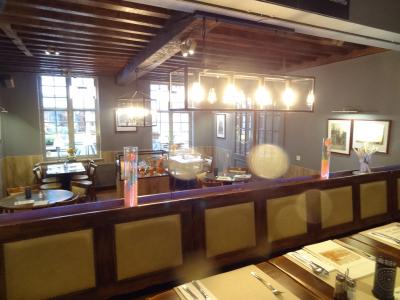 マウリッツハイス美術館に行く前に、昼食を食べに入店しました。店内はどこか古風な感じがする雰囲気で、暖炉やテーブルの上にはキャンドルが置かれていました。飲み物のメニューは英語と日本語の両方で書かれていて、日本人にも人気があるレストランのようです。まず、スペインのアンダルシアで作られた赤ワインをオーダー。料理はエルテンスープ(豆のスープ)と焼きサーモン。豆のスープはとろみがあり、豆の素材をうまく引き出すように調理してありました。サーモンは焼き加減がちょうどよくワインとの相性もよかったです。このお店はマウリッツハイス美術館の行き帰りに気軽に食事をするのにおススメです。