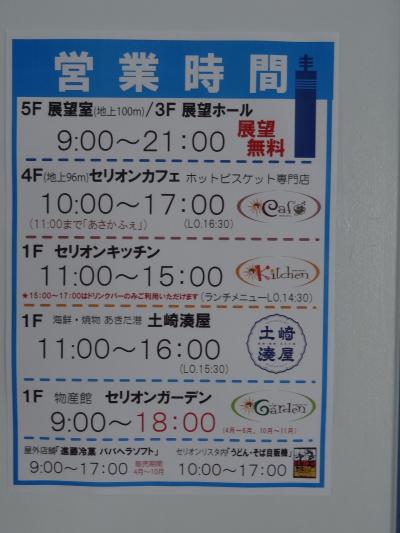 秋田県の道の駅では人気があるらしく、駐車場はほぼ満杯で車を停めるのに苦労しました。観光バスも結構この道の駅を利用しているようです。お土産だけでなく地域の物産も扱っていました。この施設の呼び物はセリオンと呼ばれる、高さ100mの展望タワーです。エレベーターで一気に展望階まで行けます。展望階から見えるあきた港の眺めは素晴らしいです。有料の望遠鏡も設置してあります。途中の階にもレストランなどがあり、景色を見ながら食事するのもいいと思います。