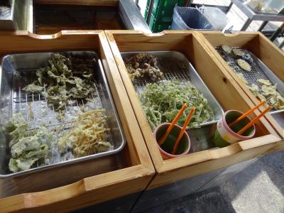 紅葉に染まるいもり池と妙高山の景色を堪能した後で、いもり池の畔にあるこのお店で食事しました。このお店の売りは蕎麦と天ぷらの食べ放題。どちらも私の大好物なので、迷わず注文。蕎麦は最近変わったらしく、二種類の蕎麦。食べ比べができるのも嬉しい。天ぷらは何といっても舞茸が美味。揚げ終わったらすぐになくなります。蕎麦・天ぷらの他に、オーガニック野菜やうどん、カレーライスも食べ放題。うどんにカレーをかけてカレーうどんにして食べちゃいました。レジの後ろの壁には芸能人の色紙がいっぱい飾ってあり、さながら芸能人御用達のお店のようでした。お腹いっぱいになるまで食べても1500円でお釣りが出るのにもお得感バッチリでした。