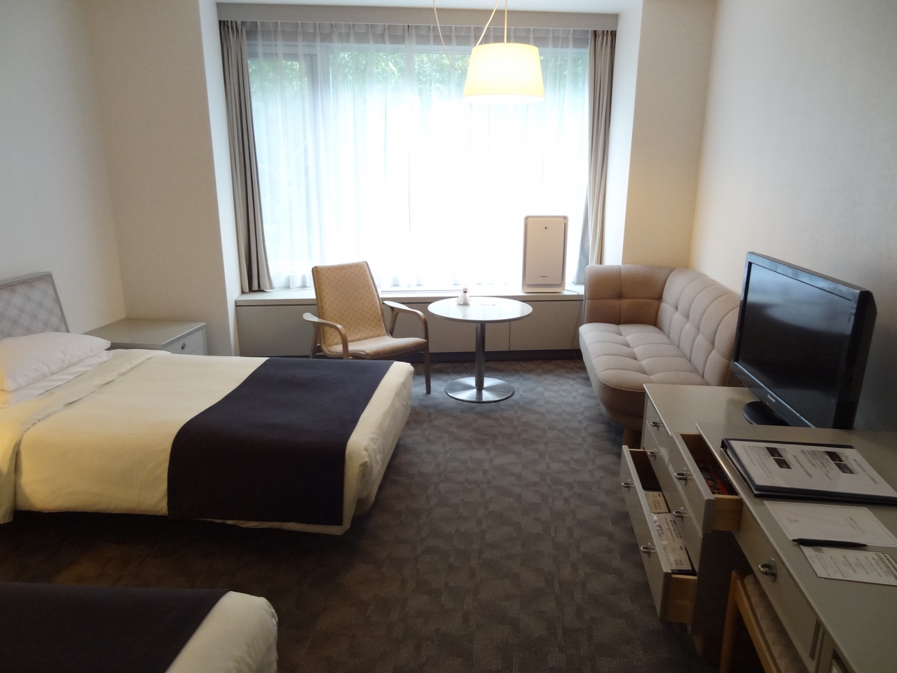 三階の部屋に宿泊、部屋からの眺めは目の前に白樺が茂っているだけで残念。でも、部屋はツインでも、とても広くて快適でした。セミダブルのベッドはスプリングが弱っているので沈みがち。ベッドのマットの頭側と足側を時々逆にしたり、表と裏を逆にしたりとかすれば偏ることはないでしょう。ホテル側で検討してみてください。ロビーやレストラン前には無料のコーヒーサーバーがあり、コーヒー好きの私には満足できました。ロビーのソファはユニークな形をしています。無料の新聞を読みながらゆったりできます。売店はコンビニとお土産店を兼ねたスタイルになっていて、ショッピングはしやすいです。大浴場は売店のすぐ横を通って少し迷路風の通路や階段を歩いて行きます。靴を履いていくよりはスリッパを履いて行った方がいいです。脱衣場にあるロッカーは4桁の暗証番号をセットしますが、空いているのか使用中なのかわかりにくいです。ロッカーの中には鍵が故障しているのもありました。内湯は奥の方がジェットバスになっていて10人くらいが浸かれる大きさです。外には露天風呂・サウナ・水風呂があります。露天風呂は意外と小さく5人くらい浸かれる大きさです。洗い場は大理石の仕切り板がありますから、隣に気を遣うことはあまりないです。一人一人の洗い場のスペースが広いので、お子様連れでも楽々です。夕食・朝食共に地下一階のレストランで。階段の両側の壁には富良野で撮影された映画俳優の写真がズラリ。料理の種類はとても多く、ローストビーフやパスタ、ラーメン、寿司はライブキッチンになっています。北海道らしい料理もありますから、層雲峡の某ホテルとは違って、北海道へ来たという感じは満点です。