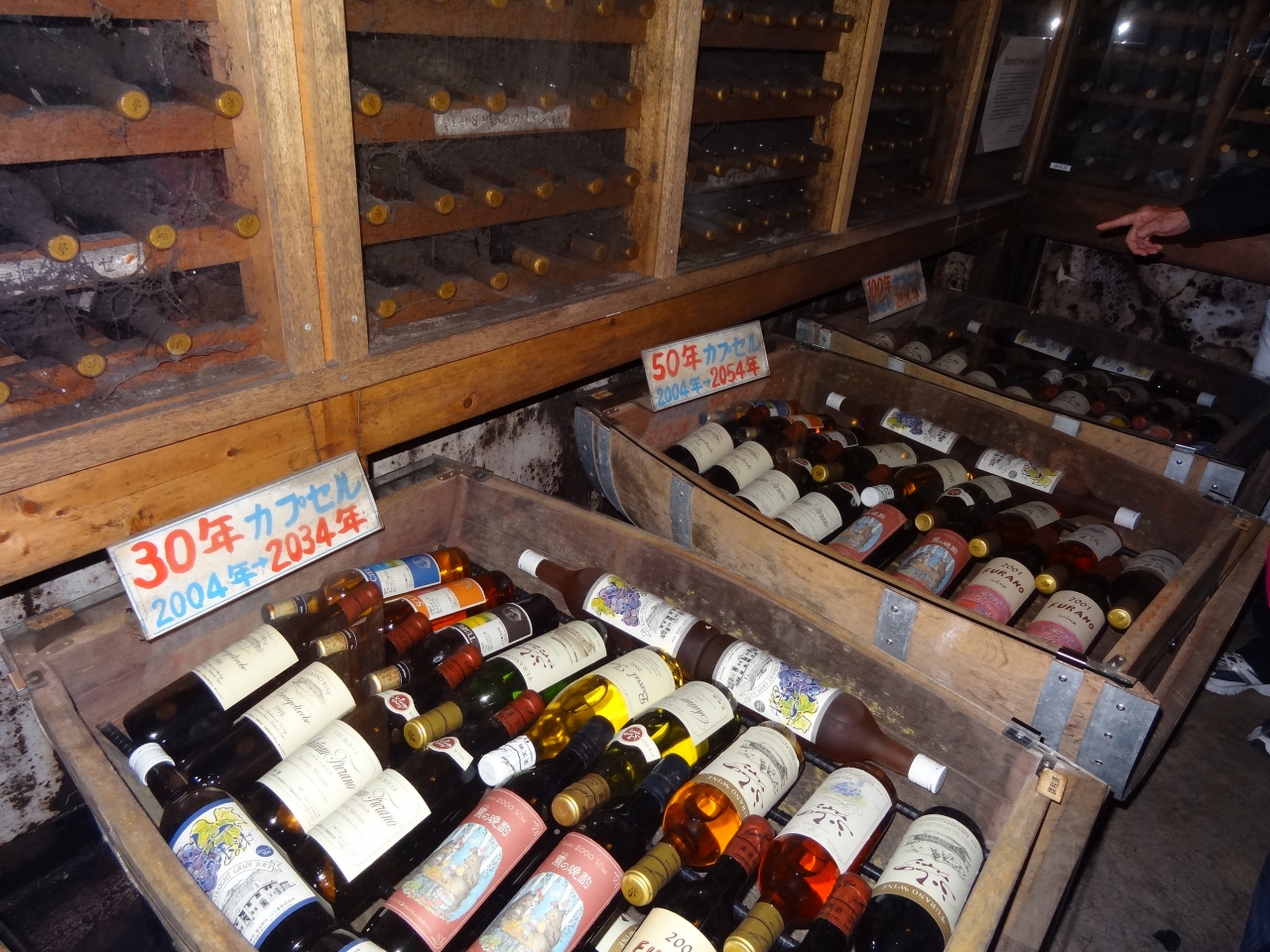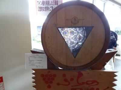 建物の地下にはワインの貯蔵室があり、これから30年・100年先のカプセルワインが木箱に入っていて興味深かったです。少しカビくさかったです。二階には大きなワイン樽で造られた万華鏡があります。中を覗くと宝石のように輝いているのにはビックリ!