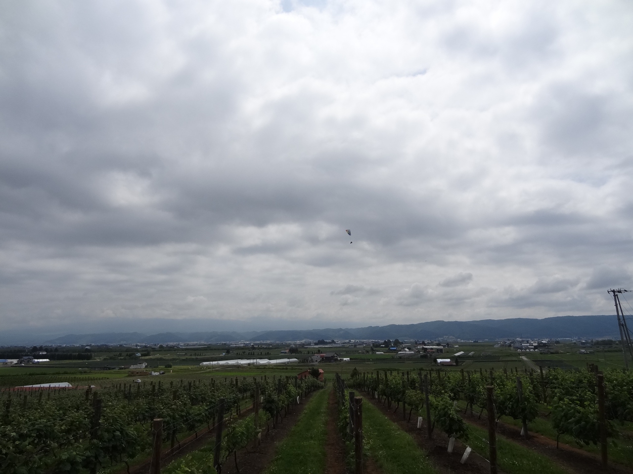 無料駐車場から建物までは少し歩きます。周囲にはブドウ畑があるので景色はいいです。時計塔が一際目立って建っています。毎正時にはメロディが流れるので、ぜひ聞いてみることをお勧めします。建物の中はもちろん六花亭のお菓子が並んでいて選ぶのに困るくらいです。富良野限定スイーツは必ず購入してください。飲食しながら休憩する席もありますから、くつろげます。店の外に木造のテラスがあり、ここから見える富良野の景色は素晴らしいです。パラグライダーの基地が遠くにあって、当日は2・3機ほど空高く飛んでいました。
