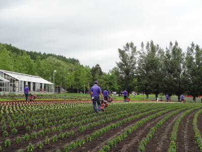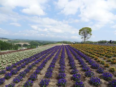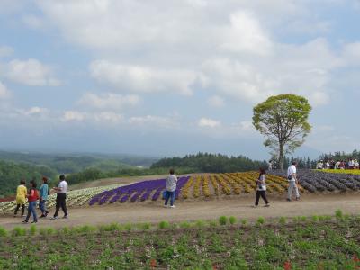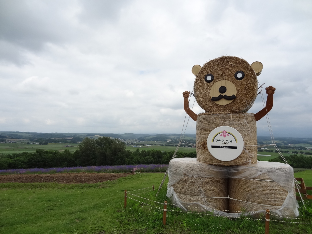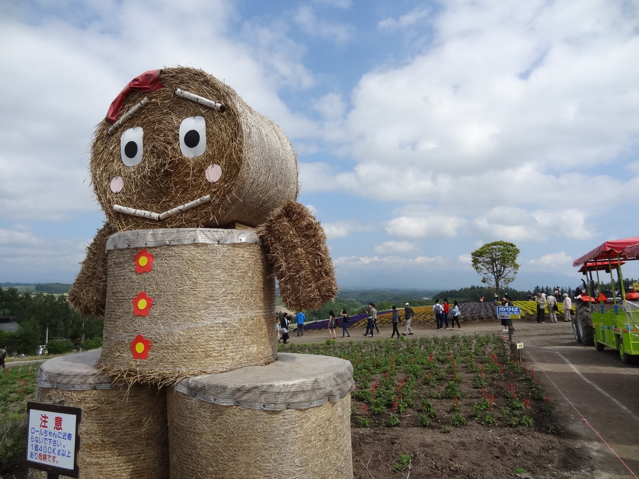 この観光地は全国的に有名になりすぎて、観光客で大混雑していました。遠くにパッチワークの丘が見える見晴台のようになっているところでは、集団の記念写真が撮れるようになっていました。背後に藁でできた人形のオブジェがあって、美瑛の景色に色を添えていました。まだ、ラベンダーが満開ではなかったですが、写真で見るような景色が見られて感激しました。思わずシャッターを何度も押してしまいました。