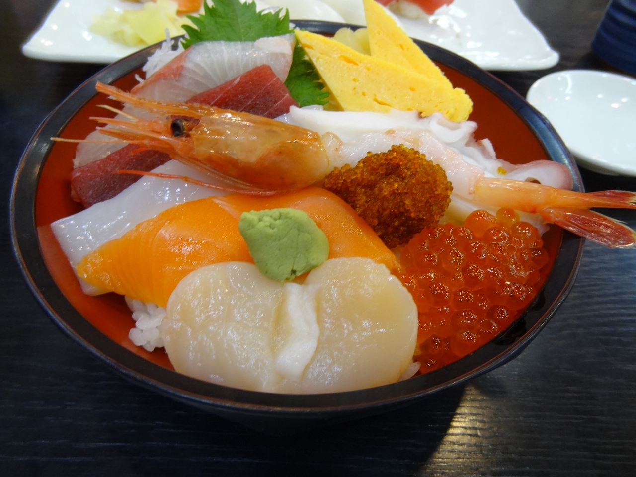 札幌市内にある中央市場で、海鮮物の品が豊富に揃う店でひしめきあっています。新千歳空港で買うよりも、この市場で買ったほうが断然安いと思います。昼食はこの市場の中にある北のグルメ中丸でいただきました。お店はそれほど広くはないですが、大漁旗が壁にかかっていて魚がとれたてという感じがします。注文した海鮮丼には刺身がギッシリのっかっていて厚みがあり、とても新鮮でした。イカ焼きもオーダー、とても香ばしい味がして歯ごたえもしっかりあり、美味しかったです。食事をするならこのお店がオススメです。