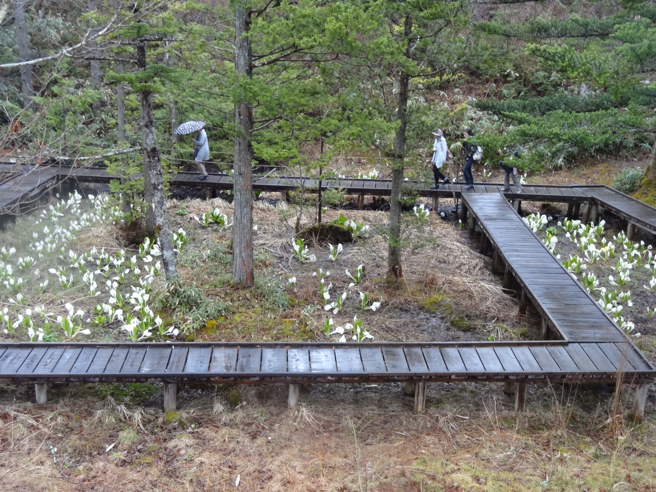 オフシーズンですが、雪がなくても十分楽しめる観光スポットです。ロープウェイは一度に5人ほど乗れます。山頂まで15分くらいアップダウンを繰り返して景色を楽しめます。山頂に到着すると水芭蕉の群生地には必ず行くことをオススメします。約一万株に5株しかないという黄色の水芭蕉は幸せを運んでくれるとか。見られないかなと思いながら群生地に入った瞬間、何と2・3株黄色い水芭蕉を見つけちゃいました。幸せ気分バッチリになりました。