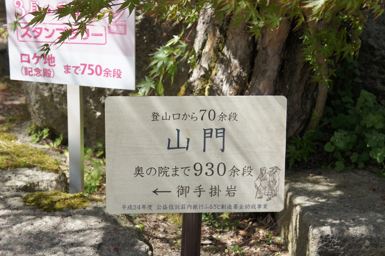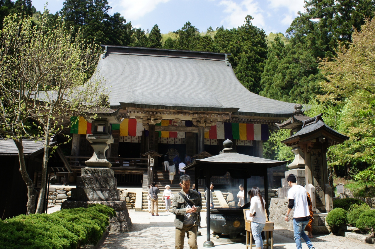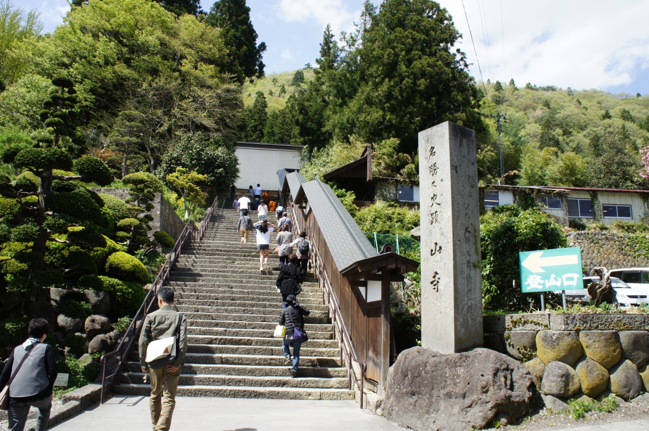 駐車場は登り口に近いほど料金は高くなります。少し歩いても300円ほどで妥協するのがいいでしょう。土産店などの店の駐車場は店で買い物や食事をすると、駐車料金はサービスになるところもあります。参道には芭蕉と弟子の曽良の彫像と歌碑が立っています。休み処で力こんにゃくを食べてから階段を上っていくといいでしょう。階段の途中には休憩するスペースもありますから、周囲の景色を眺めながら休むのをオススメします。てっぺんにある開山堂から見える景色は絶景そのもの。お堂の周囲からも景色が楽しめますが、下は断崖絶壁ですから足下には十分注意が必要です。山形県では1・2位を争う観光スポットと言われるのも納得できます。