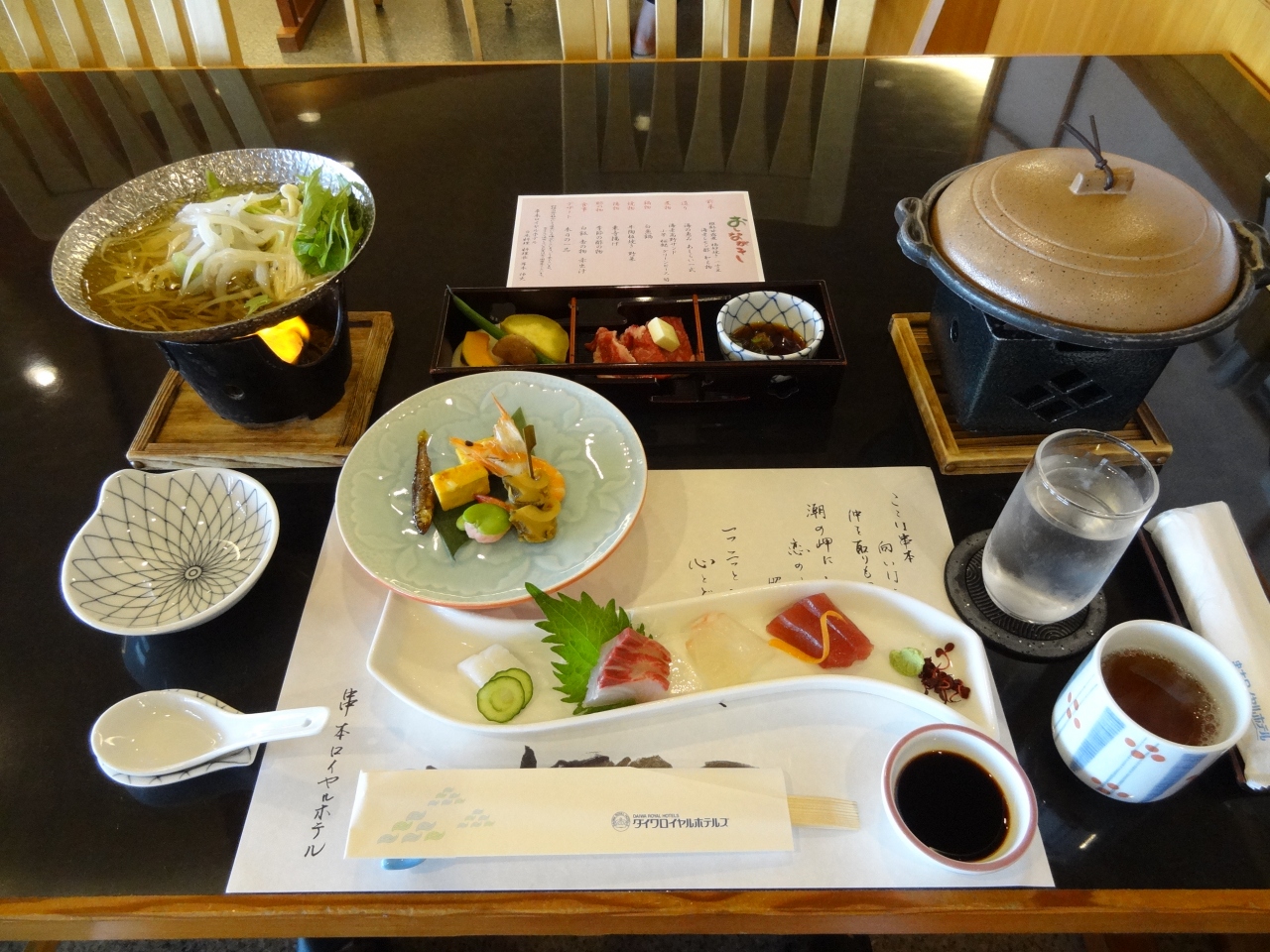 橋杭岩を観光してこのホテルに某福利厚生を利用して宿泊しました。夕・朝食付きでとてもお得感があり、自然石をあつらえた露天風呂にも入れて、旅の疲れも癒やされました。部屋からの眺めは橋杭岩が遠くに、串本大橋もバッチリ見えました。夕食は「日本料理 熊野灘」で。この料金で和食のフルコースがいただけるとは驚き・感動でした。ブッフェスタイルの朝食はメニューの種類が豊富でとても美味しくいただけました。串本観光ではオススメのホテルだと思います。