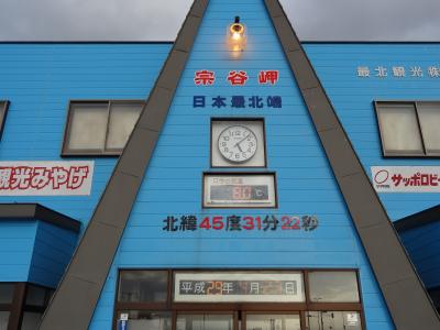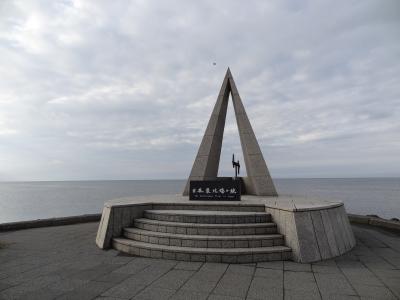 念願の日本最北端である宗谷岬を訪れました。旅行雑誌によく載っている、頭が尖がっているモニュメントは最北端らしくスタイルがバッチリ決まっています。このモニュメントの右手に宗谷岬の歌碑があり、ボタンを押すと女性歌手の歌声が聞こえます。さらに、右手には水色の建物があり、入り口の上には緯度と時刻の表示がありますので、この前で記念写真を撮影する観光客が多いです。道路側には最北端のポストもあるので、記念に撮影しました。建物の中にはお土産が売られています。記念切手を買って、手帳にもスタンプを押してみました。とてもいい記念になりました。