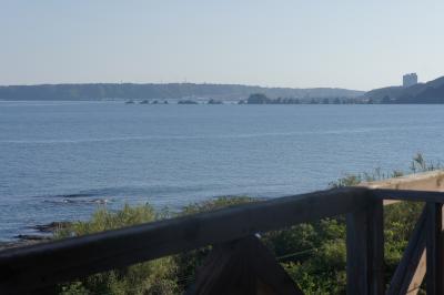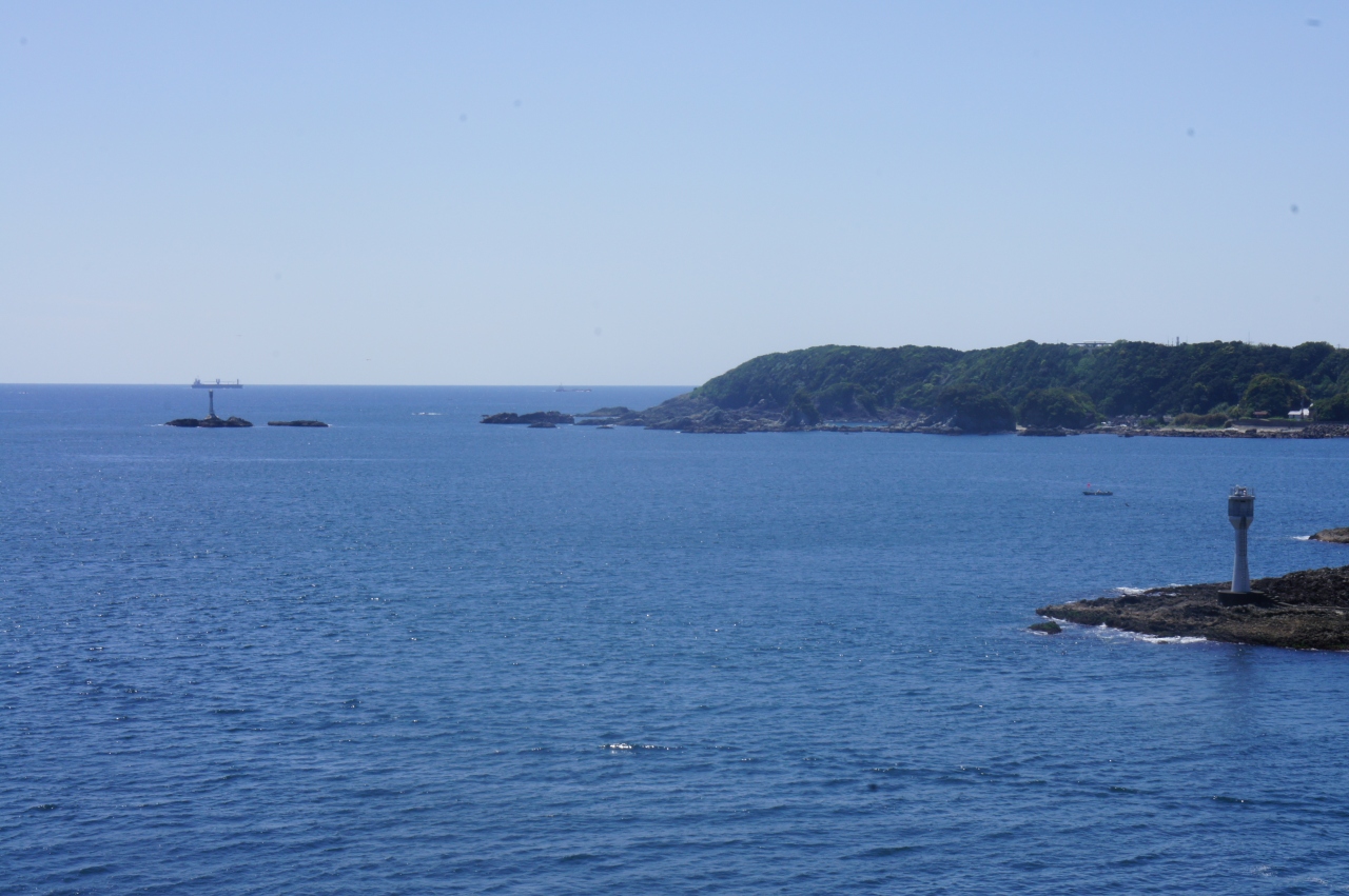 潮岬の観光を終えて橋杭岩へ戻る途中、右手にループ状の道路と上が丸くなっている大橋が見えたので、行ってみることにしました。ループ状になっている道路から見える景色が良かったのですが、残念ながら車を駐める所がなくて、大橋を渡りすぎてすぐ右手にある展望台に車を駐めて、大橋が入る海景色を眺めることができました。道路の反対側にも5メートルくらいの高さがある展望台があり、ここから見る景色も素晴らしかったです。