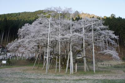 テレビのニュースで放送されていて淡墨桜を一度見てみたいと思い、淡墨公園まで来ました。午前6時半に着いたので駐車場は無料でした。淡墨桜は東西が山に囲まれているため、午前7時過ぎにようやく東の山の頂上から日が出てきて、淡墨桜のバックにある山の頂上に日が当たり、徐々に淡墨桜に光が当たってくる、この時がシャッターチャンスだと