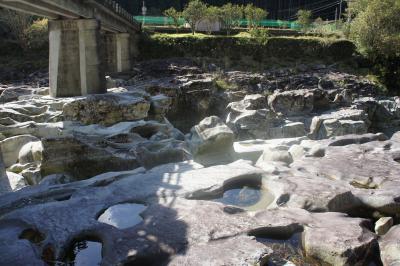 橋杭岩の観光を終えて地元の干物屋さんで古座川沿いにいくつか観光スポットがあると聞き、この滝の拝を訪れました。目的地に着いてもどこに見所があるのかわからなかったです。しかし、車を降りて川を見ましたら、何と!河原のの岩は無数の穴だらけ!その異様な景色に感動しました。この穴ができる過程を説明する案内板が道路の脇にありますので、説明を見ることをオススメします。実際に、道路から岩のほうへ降りる階段があります。降りてみると、巨大な岩にまで大きな穴がボコボコとあります。足を取られないように気をつけて歩かなければなりません。