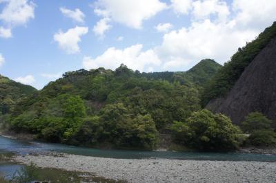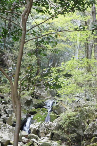 古座川の二つの観光を終えて、このまぼろしの滝を訪れました。訪れる前にネットで下調べは必要です。結構険しい山道を車で走り続け、うっそうとした登り口の手前で車の向きを逆にして駐車します。滝まで5分との看板がありますが、実際には10分はかかります。いわゆる沢登りでごつごつした石がある道(道らしくはない)を上がっていきます。滝の落ちる音が聞こえてくると、滝全体が木々の間から見えてきます。那智の滝よりわずか俵一俵分だけ短いということから、忘れ去られるような滝になってしまったとか。