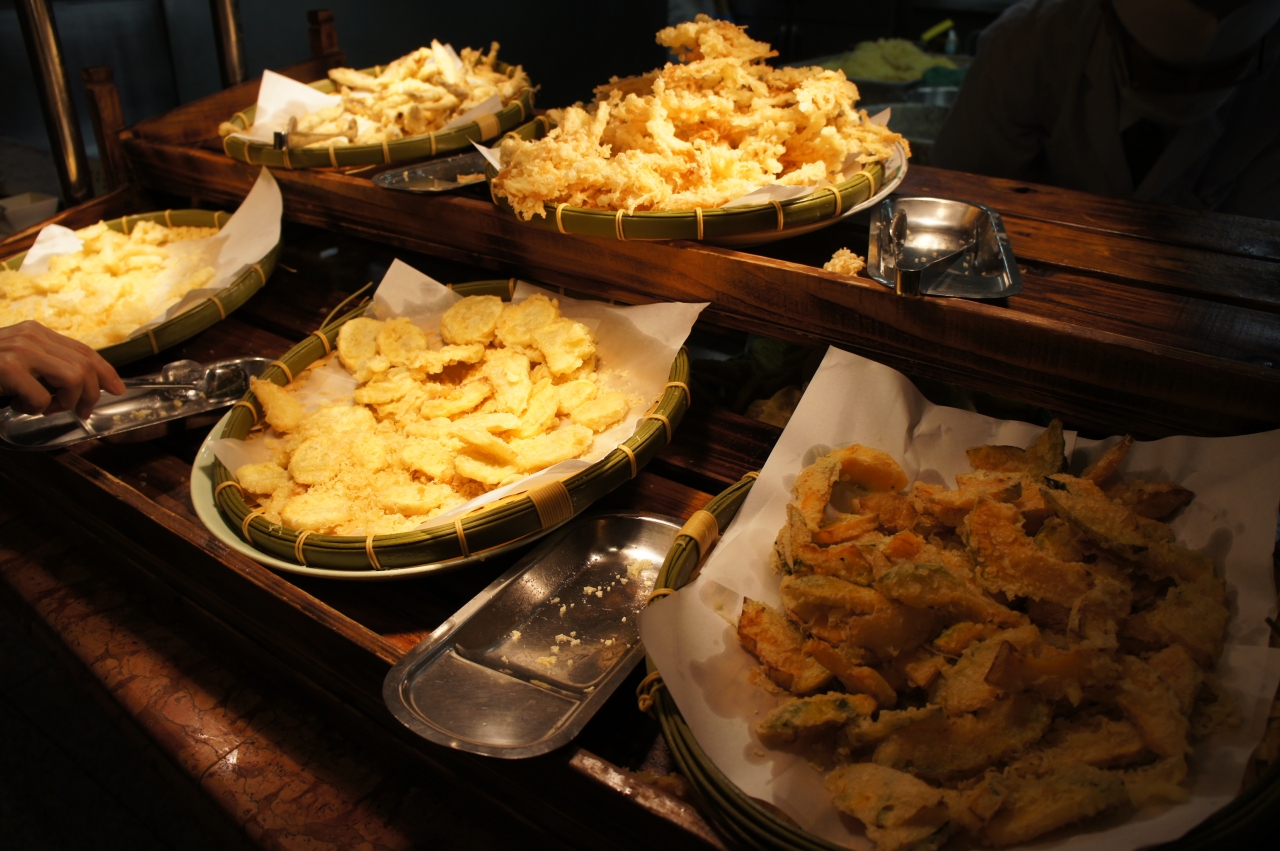 青春18きっぷを利用して、JR甲府駅まで来ました。到着したのが昼時でしたので、駅の近くで食べる所を探していてこのお店に行き着きました。入店すると、天ぷら類はトッピングになっていて好きな天ぷらを選べます。一番人気は山賊揚げです。値段の割にはサイズが大きすぎますから一度ご賞味してください。手作りのおにぎりもありました。テーブル席は二つか三つあります。一人ならカウンター席をお勧め。山賊揚げと野沢菜天をかけそばの上に乗せて食べたら、何とも言えないほど、蕎麦と天ぷらがほどよくマッチングして絶品の味に満足。喉ごしがよくて腰のある蕎麦は久しぶり。缶ビールも入れて千円ほどならとてもリーズナブルに感じました。