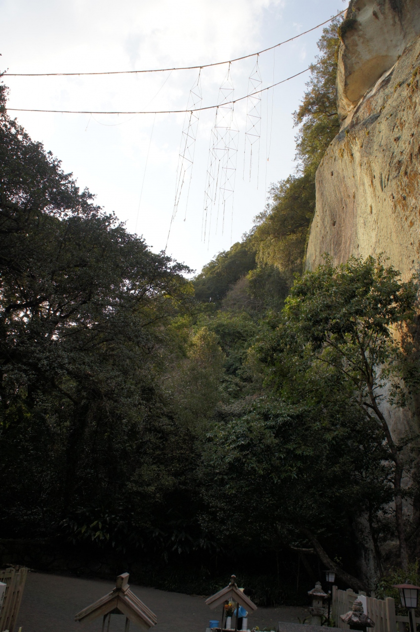 獅子岩を見た後で、道路の看板でこの神社があると知り、早速行ってみました。日本で最古の神社ということから世界遺産になったようです。無料駐車場から境内へ行く途中にお土産店や食事処もあり神社の行き帰りに立ち寄ることをお勧めします。境内を歩いて行くと、あちこちに小さな祠があり、その都度お参りしていくといいです。ずっと奥まで行くと、大きな岩山が見えてきます。その巨大さにはびっくりしました。しかも、この岩山の上空にはロープのようなものが何本もかかっています。この岩山全体がご神体のようです。とても厳かな感じがしました。