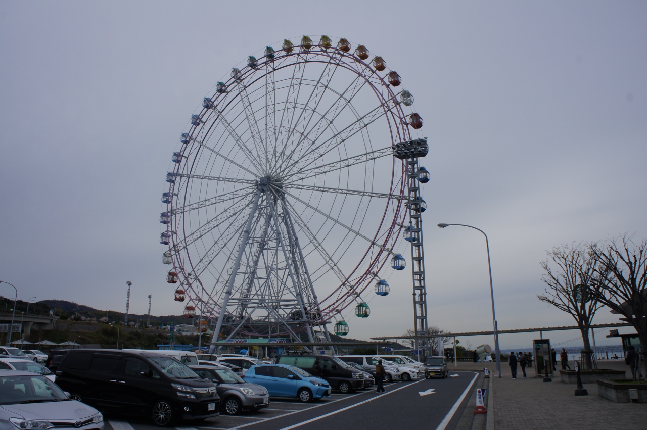 神戸側の高速からこの大橋まで直結で通り越して、淡路SAで停車。大きな観覧車があり、その横に大橋を一望できる展望台があります。外国人観光客も多く訪れるこの展望台からはやや左に瀬戸内海に浮かぶ世界最大の吊り橋を目の当たりにできます。ちょうど白いドレスをまとった貴婦人のようにも見えます。投稿写真ではこの日が曇り空のためかすんでいるようでしたが、快晴の日にはコントラストが効いて絶景となるでしょう。