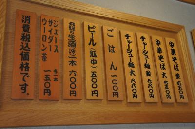 国道41号線沿い、高山市の南入口にあります。高山市の中心部からはかなり外れて外れていますので、車利用が便利。無料駐車場も完備しています。和風建築の店で飛騨地方独特の造りとなっています。カウンターの上にはプロボクサーや著名人の記念写真や色紙が飾られています。結構、中華そばの味を知り尽くした人たちが足繁く通っている店のようです。メニューは掲示板のみ、メニューが少ないためかテーブルの上に置かれる品書きはありません。迷わず、中華そばを注文。中細麺に乗っかっている具はチャーシューが3枚、メンマ、きざみネギだけです。いたってシンプルなのが飛騨の中華そばの特徴です。鰹だしをベースにしていくつかの出汁の材料をブレンドした醤油味のスープ。結構奥深い味がしました。初めて飛騨の中華そばを食べたらやみつきになりそうな感じがします。