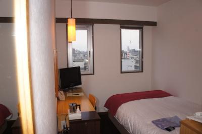 ホテルはJR姫路駅から北北西へ徒歩で8分ほどにあります。大通りから左側にあるため、場所がわかりにくいのが難点です。比較的安めの宿泊代からすれば、コスパはかなり高いと思います。南向きの部屋からはJRの電車がビルの谷間からチラチラと見えて、それほど悪くはなかったです。部屋はシングルのためやや狭いですが、必要な設備・備品は整っていました。ユニット式のバスルームですから、7階にある浴場の利用をお勧めします。4・5人が同時に入れる広さで、大きな窓からは姫路城の右端にある櫓の一部が何とか見えるほどでいい景色は望めません。朝食は一階のレストラン、和食か洋食かを選べます。選んだ和食はなかなか風情があり、ご飯が曲げわっぱの容器に入っていて、野菜を中心にした料理が品良く小皿に並んでいました。味には一切手抜きがなく、いい味付けがされていて、とても美味しくいただけました。ドリンク類も充実していて、ジュース(4種類)、牛乳、コーヒーなどがありセルフで飲めました。姫路観光にはもってこいのホテルで、初めて姫路に来た人にも自信を持ってオススメできます。
